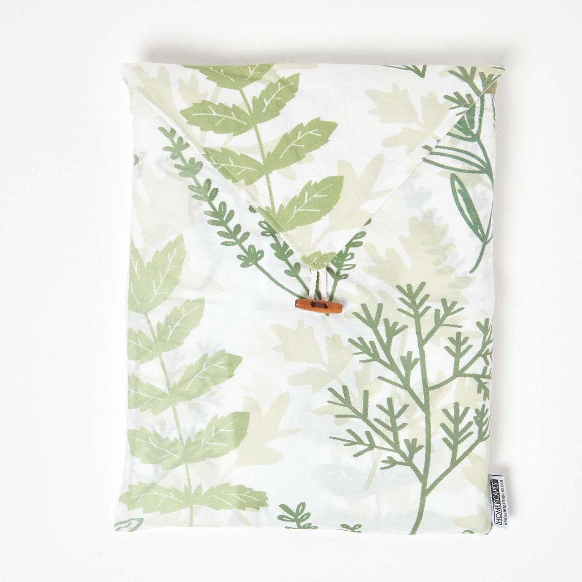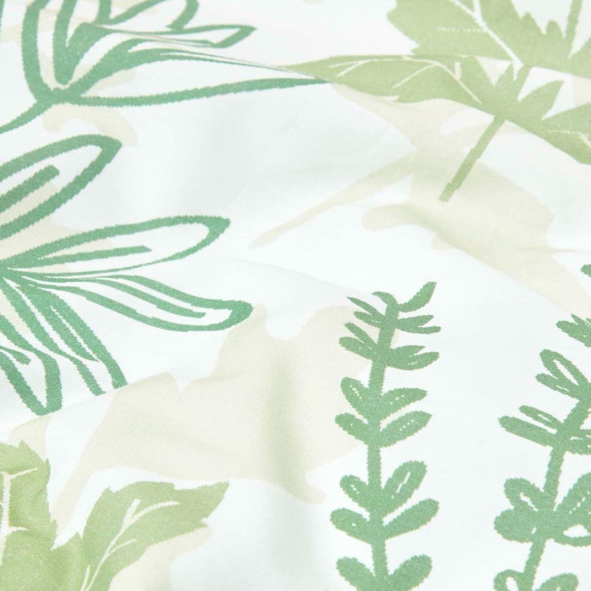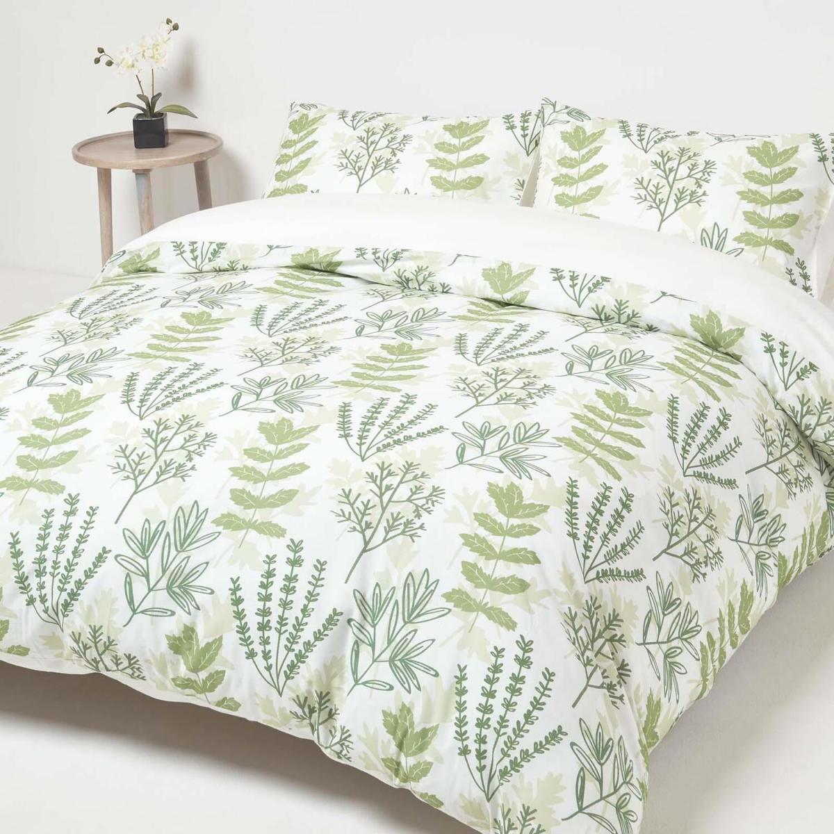 Introduce a calming and natural look to your bedroom interior with Homescapes patterned bedding. This percale cotton duvet cover features an on-trend botanical design set on a white background. This natural leaf design is on trend and will compliment white and colourful style bedrooms. Woven from durable 200 thread count (400 equiv) 100 cotton this strong and durable duvet cover is designed to last and will become softer over time. Digitally printed to ensure lasting vibrant colour, this striking pattern has been exclusively designed by Homescapes and is a limited edition run. Bed sheets quick and easy, featuring a quick zip closure and the pillowcases have a standard envelope close for a neat look. Available as a single set (including one pillowcase), as well as a double, king and super king size (includes two pillowcases). Don't forget to complete the look with our co-ordinating collection of natural and white, flat and fitted sheets available in a range of thread counts.