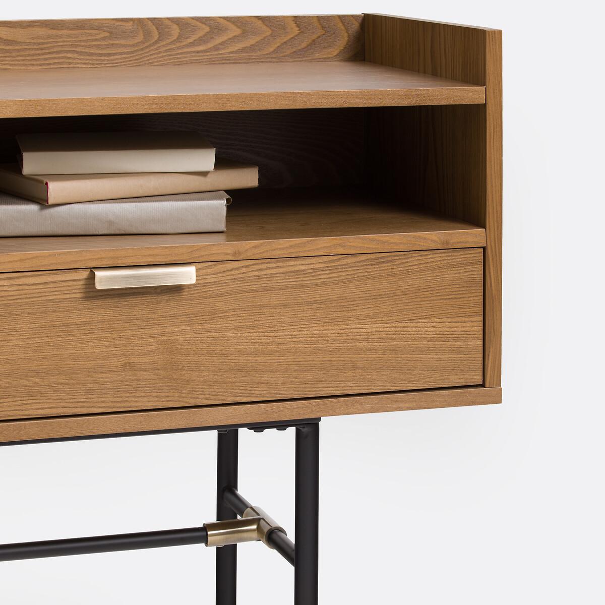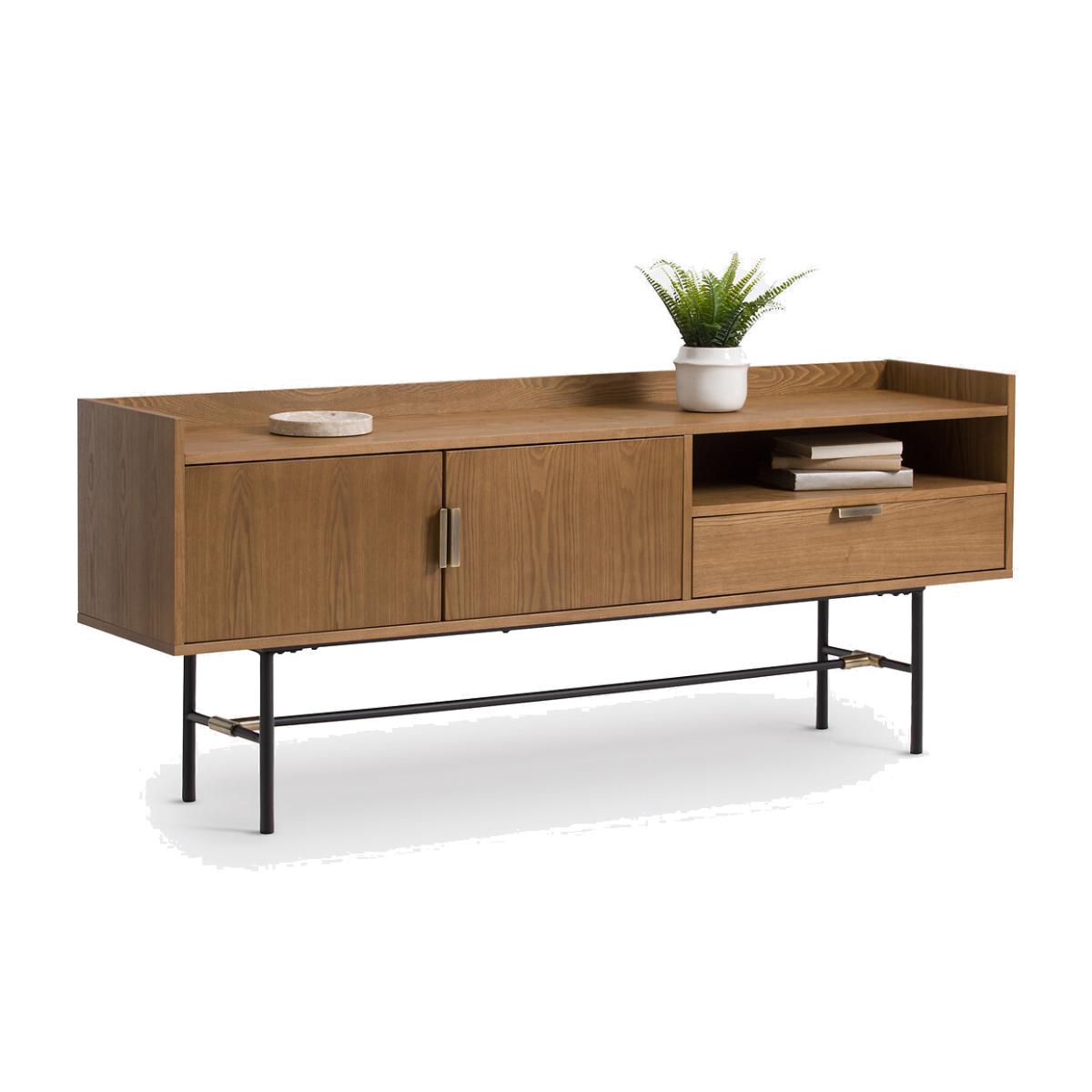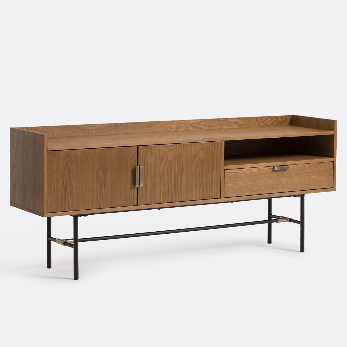 Botello vintage sideboard. The vintage look is back with plenty of elegance on this beautifully designed sideboard. Product Details • MDF structure veneered in walnut-stained ash with acrylic varnish • Tubular steel legs lacquered black with epoxy finish • Steel handles and joint detail with a brass finish • 2 doors • 1 compartment • 1 drawer. Find the entire Botello collection on laredoute. Dimensions Total • Length: 180cm • Height: 73cm • Depth: 40cm. Interior • Open compartment : L74 x H13 x D38.5cm • Compartment behind the doors : L48 x H30 x D35cm • Drawer: L73.5 x H14.5 x D38cm. Home Delivery. Sold for self-assembly. It will be delivered to your door!Note! Please check that access points (doorways, stairways, lifts) are wide enough to accommodate your delivery. • WOOD FROM SUSTAINABLY MANAGED FORESTS. FSC® certified wood comes from forests that are environmentally, socially and economically well managed. Dimensions and weight of parcel2 parcels • L188.5 x H12.5 x D46.5 cm - 39 kg • L89.5 x H13.5 x D46.5 cm - 20 kg