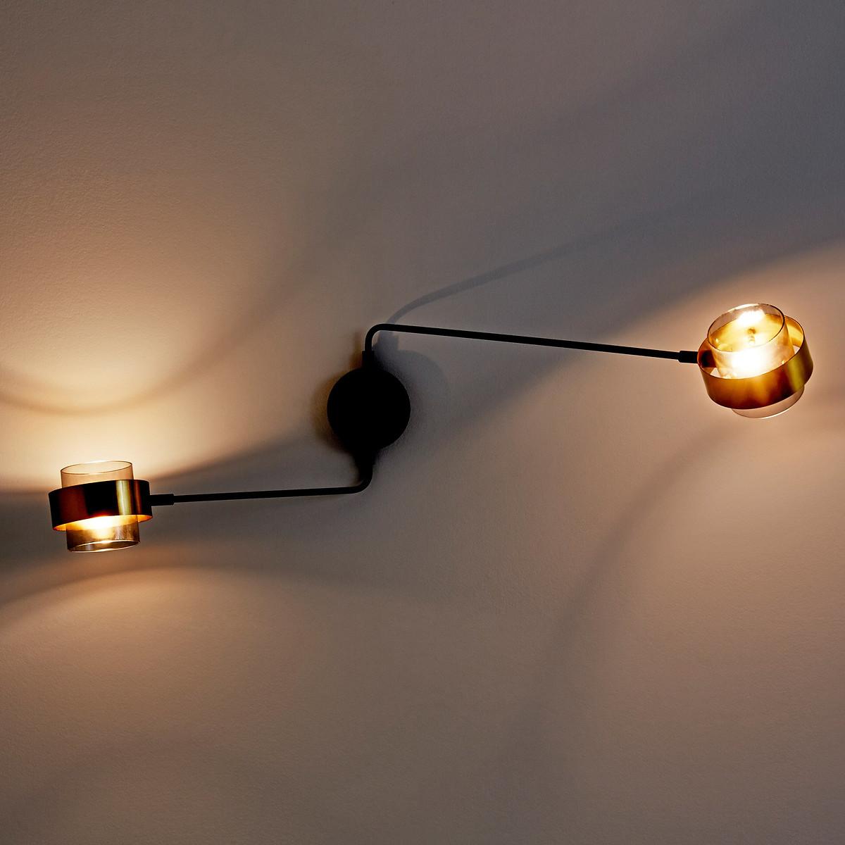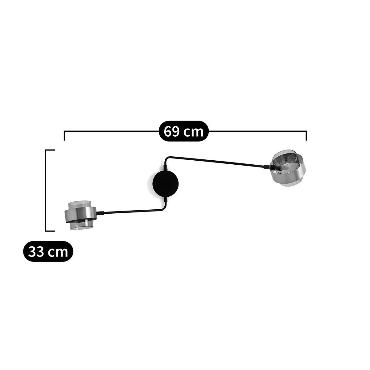 The Botello double wall light, with brass and smoked glass finishes will fit into any stylish and contemporary interior. Product Details • 2-Arm wall light • Iron structure covered with epoxy paint • Brass-finish iron and smoked glass lampshade • 2 adjustable arms • Sockets for G9 LED bulbs 5W max (not supplied)Dimensions • 69 x 13 x 33cm