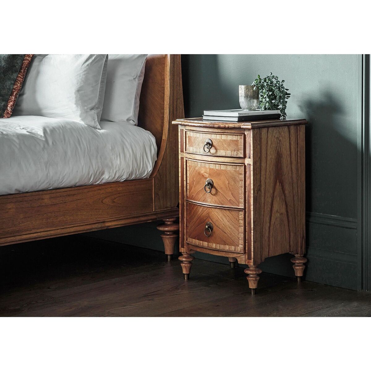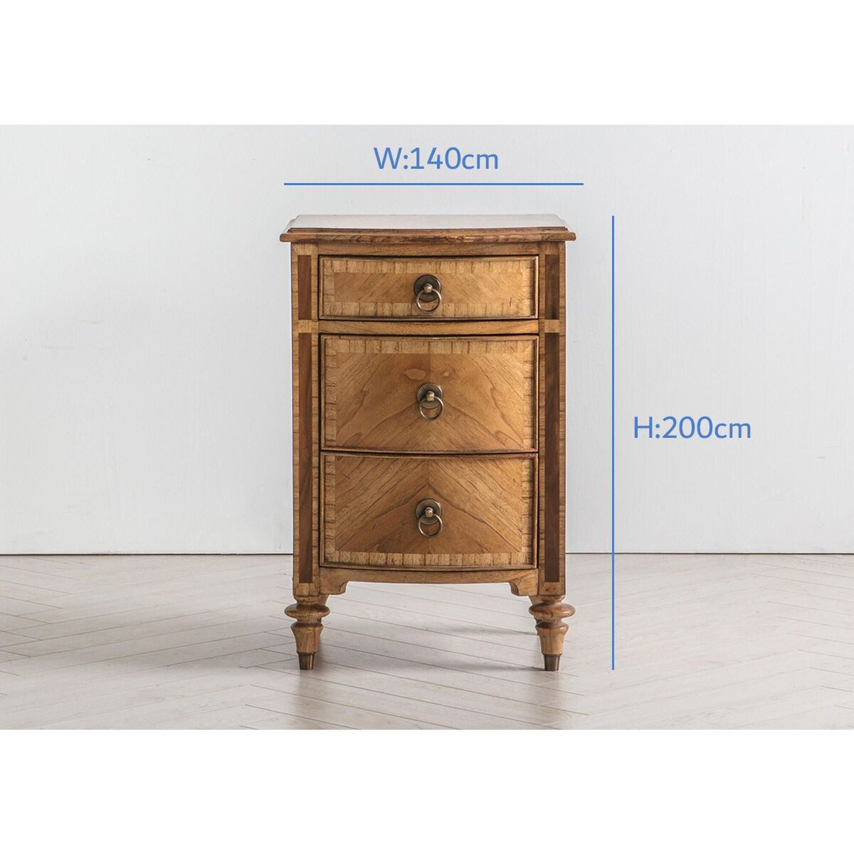 I love this bedside cabinet for its classic charm and versatile appeal. Its warm wood tones and traditional design make it an excellent addition to both vintage-inspired and rustic interiors, but it can also add a touch of character to eclectic or transitional spaces. Practical styling tips include using it to display a favourite lamp, a small plant, or personal accessories, while keeping the top surface uncluttered for a streamlined look. Incorporating layered textures nearby - like a soft throw or layered rugs - can help it blend seamlessly into more relaxed schemes. Its compact size and three drawers make it both functional and charming, perfect for creating a cosy yet stylish bedroom corner.