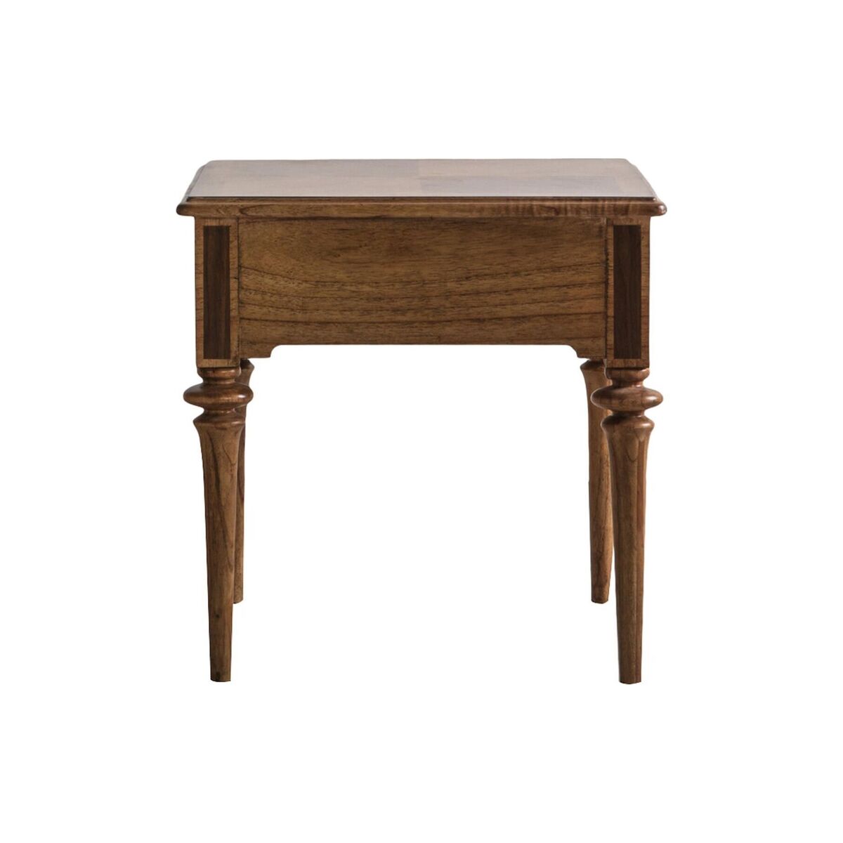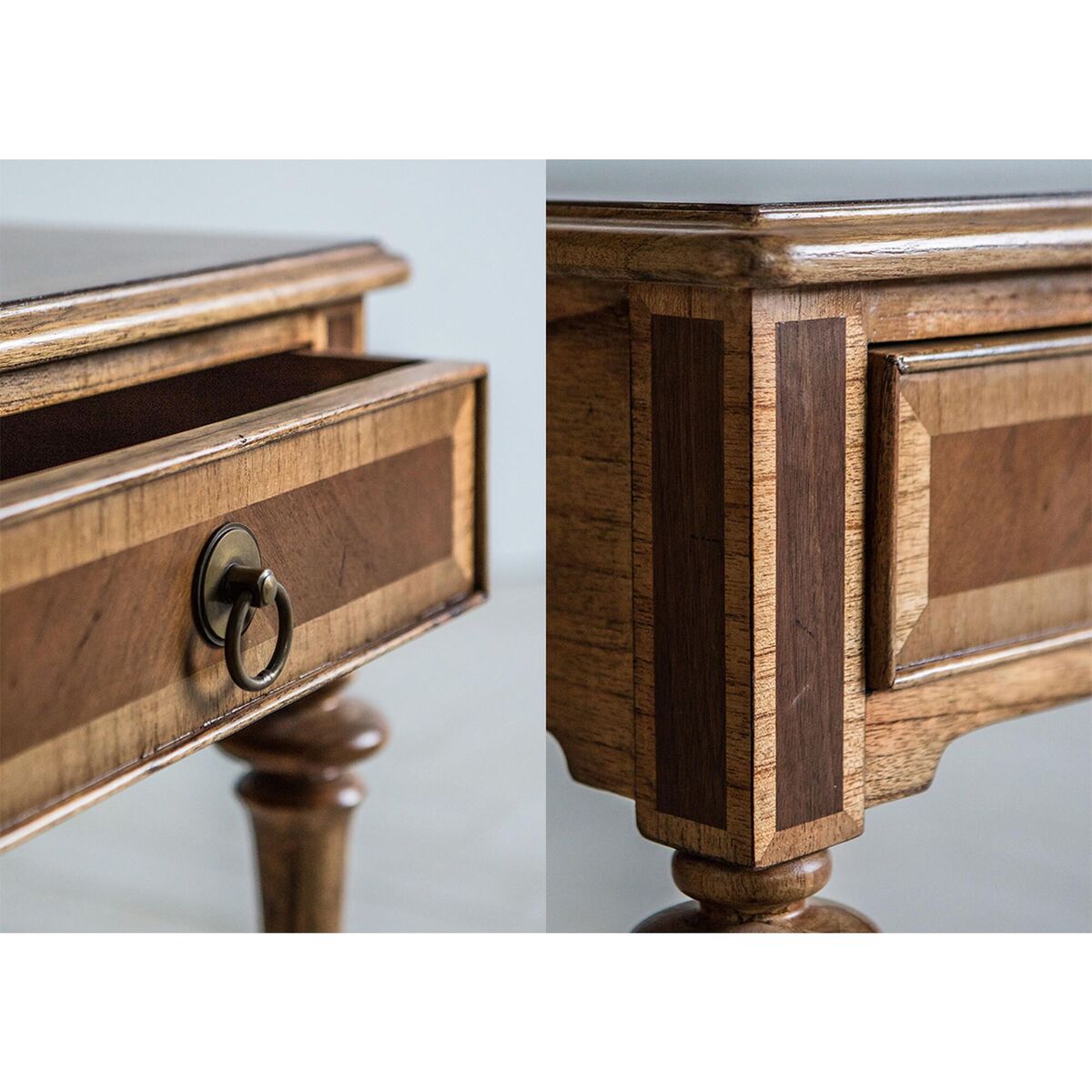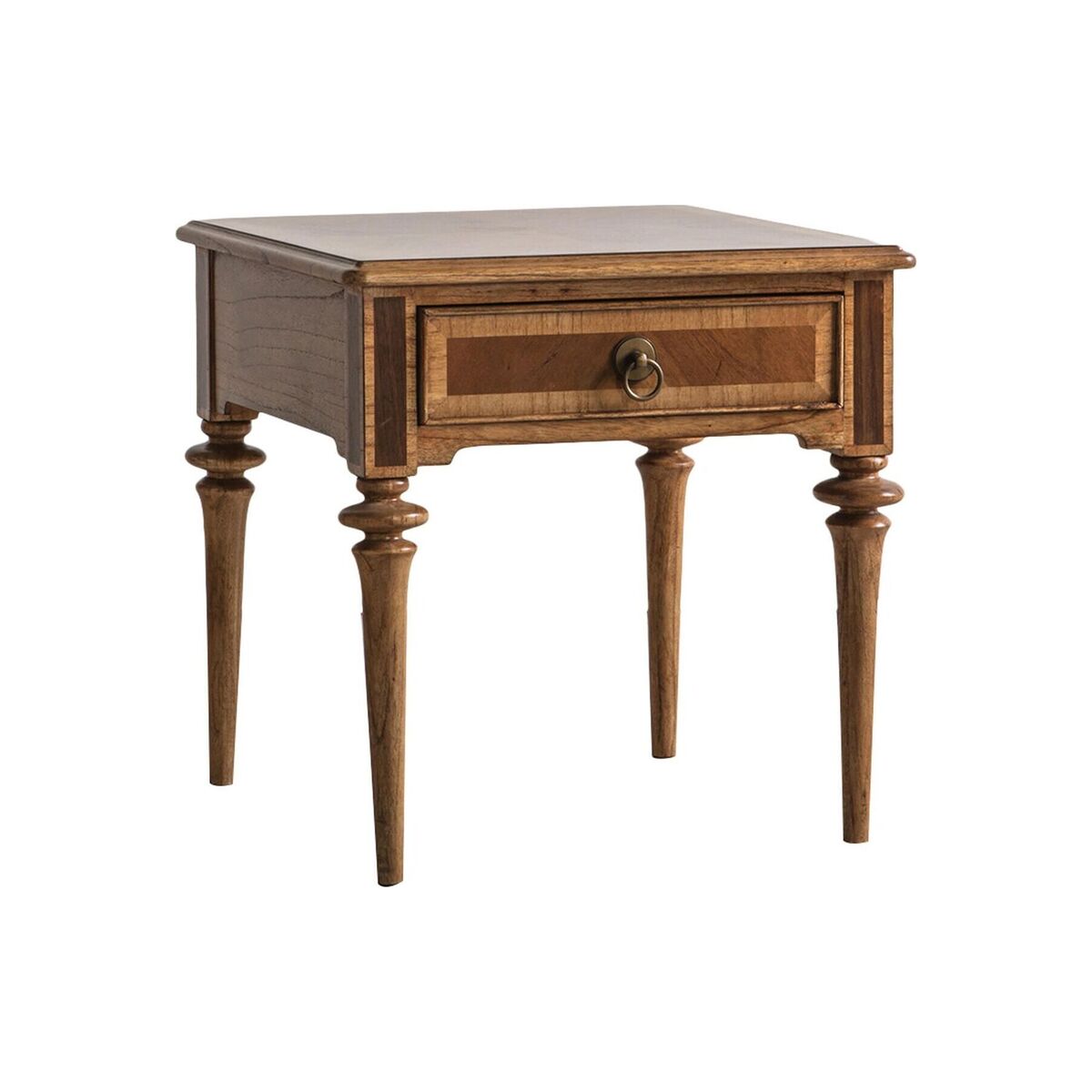 Shine a light into your stylish decor with the refined aesthetics of the Botticelli side table. Crafted from Mindy Ash with beautiful Walnut inlays, this clean-lined design with slim, carved legs features a small single drawer, with antiqued handle, for added functionality. Use the Botticelli as the base for a statement table lamp or team with a generous armchair for a dreamy reading nook.