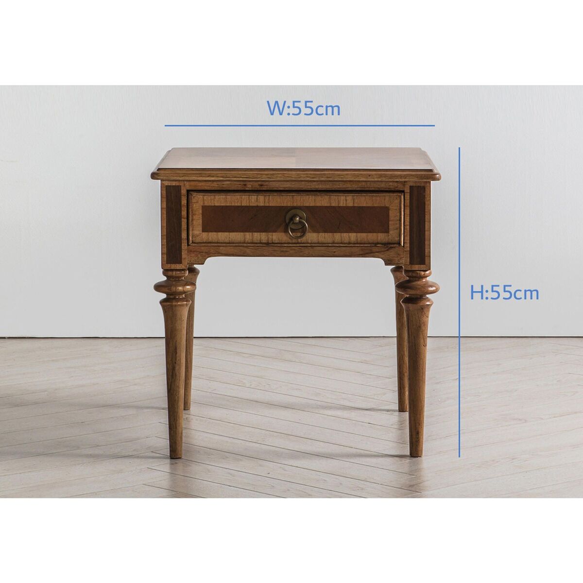I love this side table for its classic and versatile design, making it a great addition to both traditional and eclectic interiors. Its warm wood tones add a touch of timeless elegance, while the single drawer offers practical storage for everyday essentials. It works particularly well beside a sofa or armchair, where it can hold a lamp, books, or decorative objects. For styling tips, consider pairing it with textured textiles or metallic accents to add visual interest, or keep it minimalist for a clean, sophisticated look. This piece is a reliable choice that can adapt seamlessly to different settings, adding a hint of understated charm.