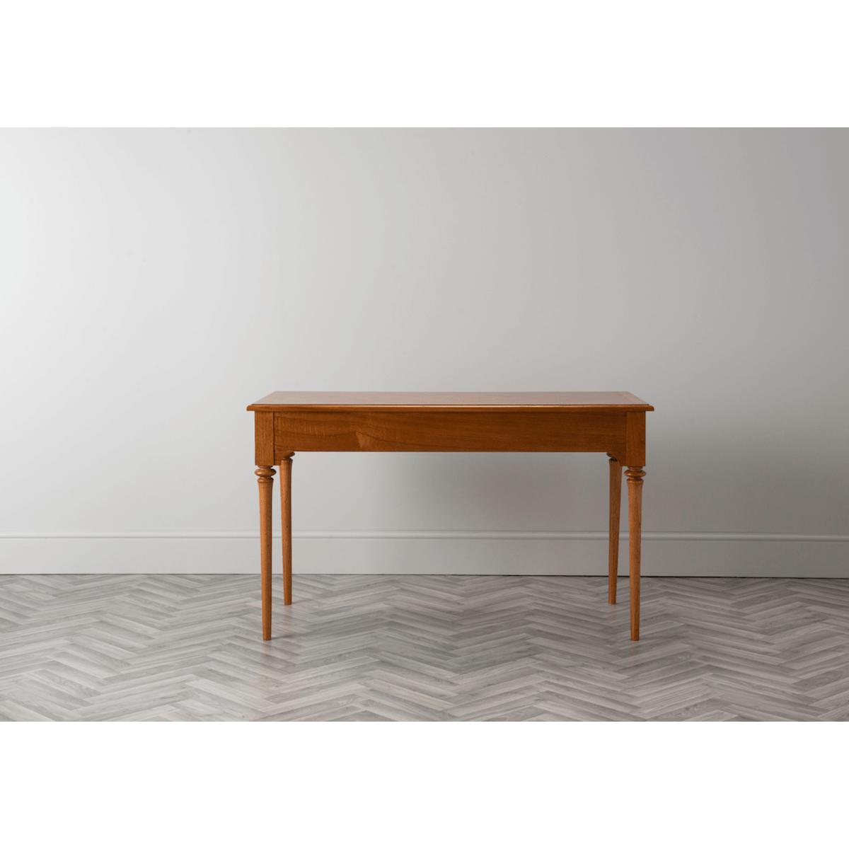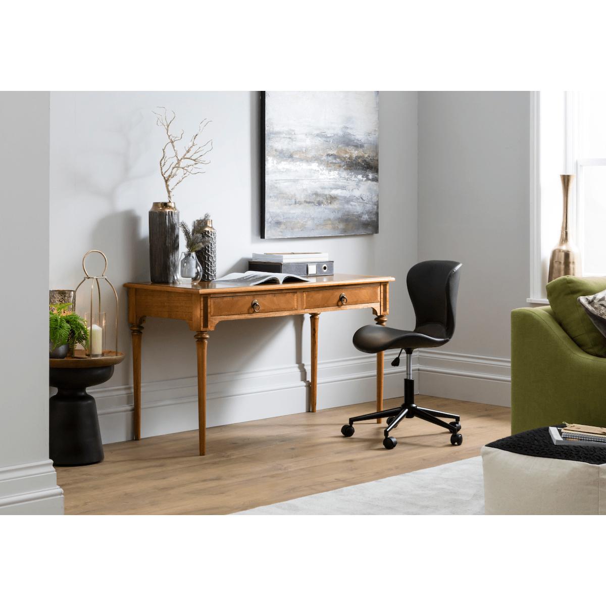 I’m a fan of this Botticelli desk for its neat proportions and warm wood finish - it slots straight into both traditional and contemporary schemes without feeling fussy. The slender turned legs keep the look light, while the pair of drawers give you discreet storage for stationery and chargers. For styling, position it against a pale or muted wall to let the wood grain stand out, then add a slim desk lamp, a neat stack of notebooks and a small plant or ceramic vase. Tuck away cables through the back and use drawer organisers to maintain a clutter-free surface. It works equally well in a dedicated study, a guest bedroom or even a hallway as an occasional writing table.