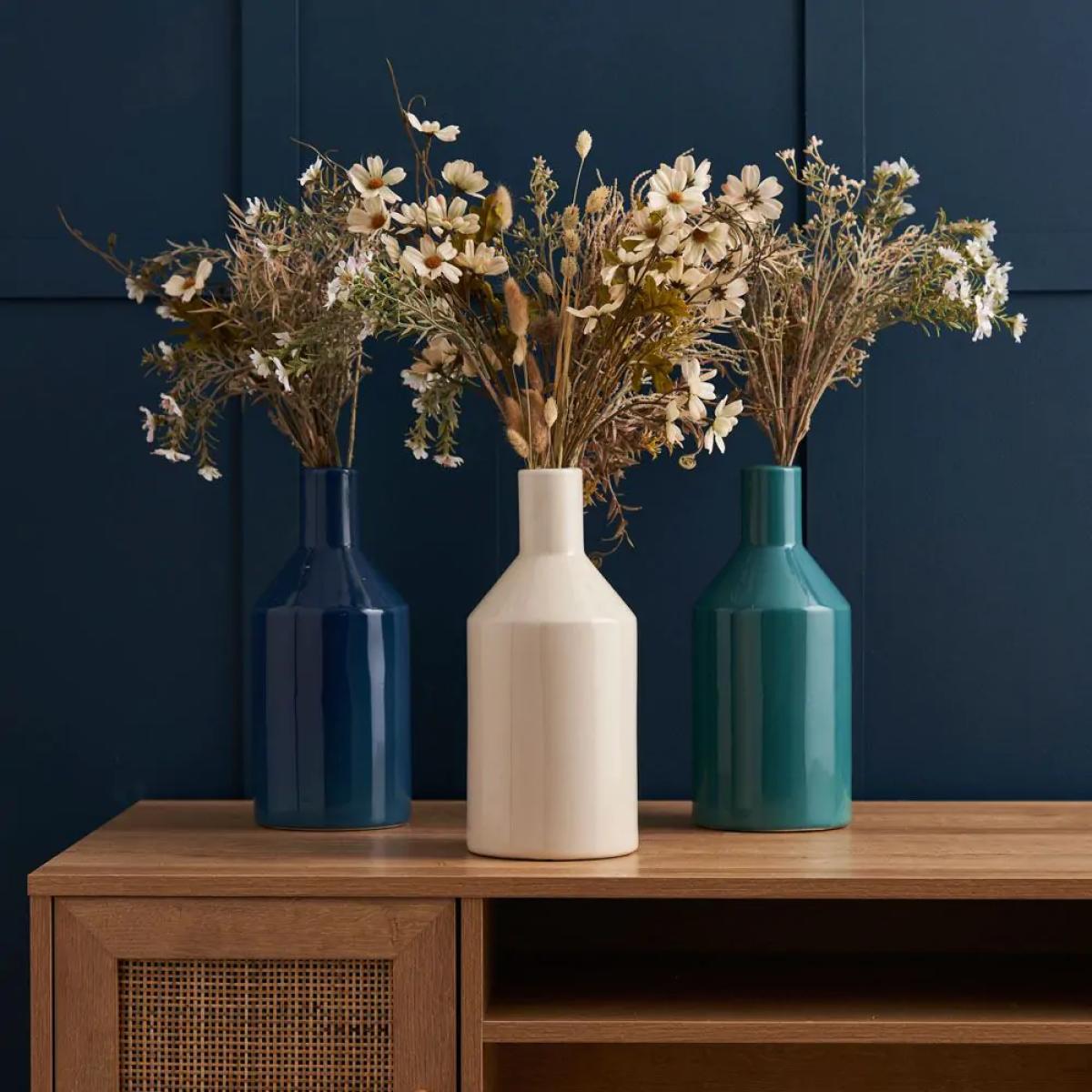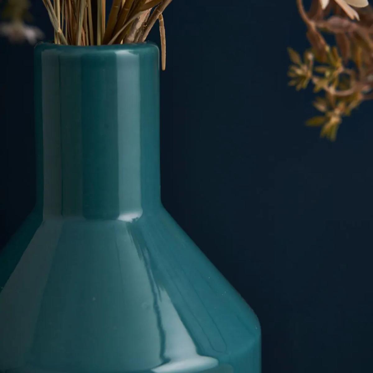 I love this bottle ceramic vase for its clean, modern silhouette and rich green hue, which can inject a fresh, calming vibe into a variety of interiors. It works particularly well in contemporary, Scandinavian, or minimalist spaces, where its colour adds a subtle pop without overwhelming. For styling tips, try pairing it with simple greenery such as eucalyptus or dried grasses for a natural touch, or use it as a standalone statement piece on shelves, side tables, or window sills. Its versatile shape makes it ideal for both solo display or grouped with other colours and textures to create layered visual interest.