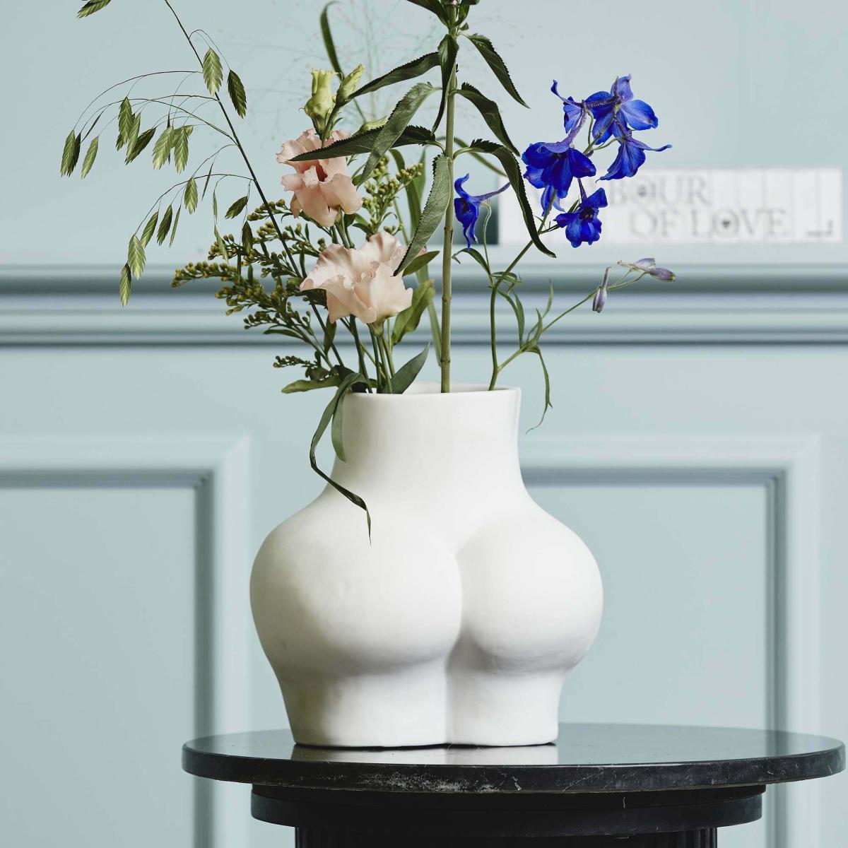 I really like this bottom vase for its sculptural form and minimalist aesthetic, making it a versatile piece for various interiors. It works particularly well in contemporary and Scandinavian schemes, where clean lines and simplicity are key. For styling, I recommend pairing it with fresh or dried loose stems to highlight its shapes, and placing it on a side table or mantle to add visual interest without cluttering the space. Its neutral colour means it can blend seamlessly into both colour-rich and monochrome interiors, allowing the natural beauty of your flowers to take centre stage.