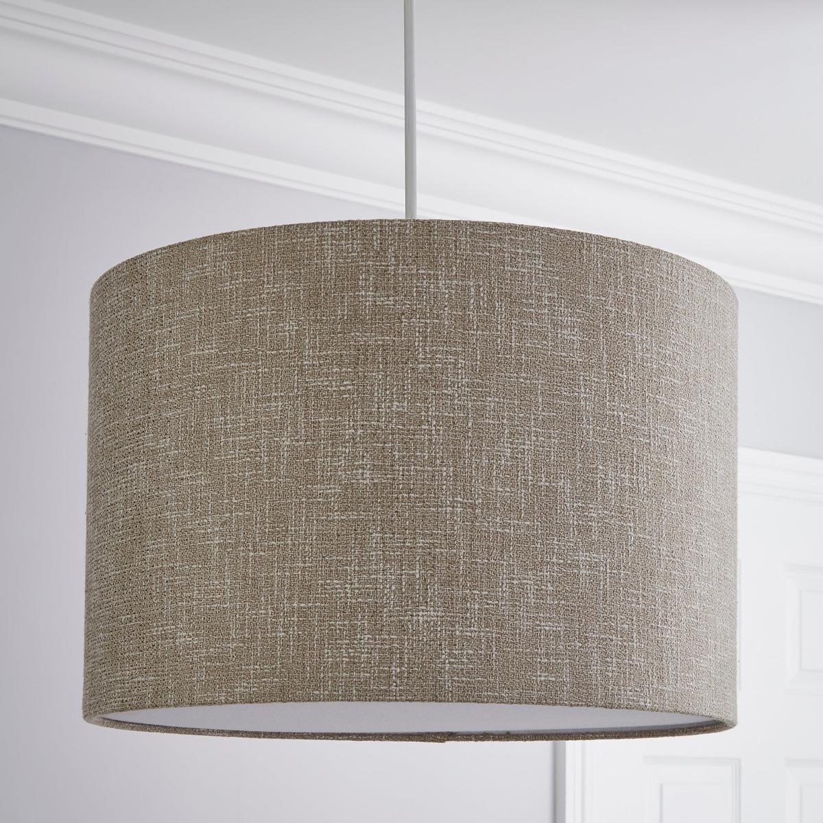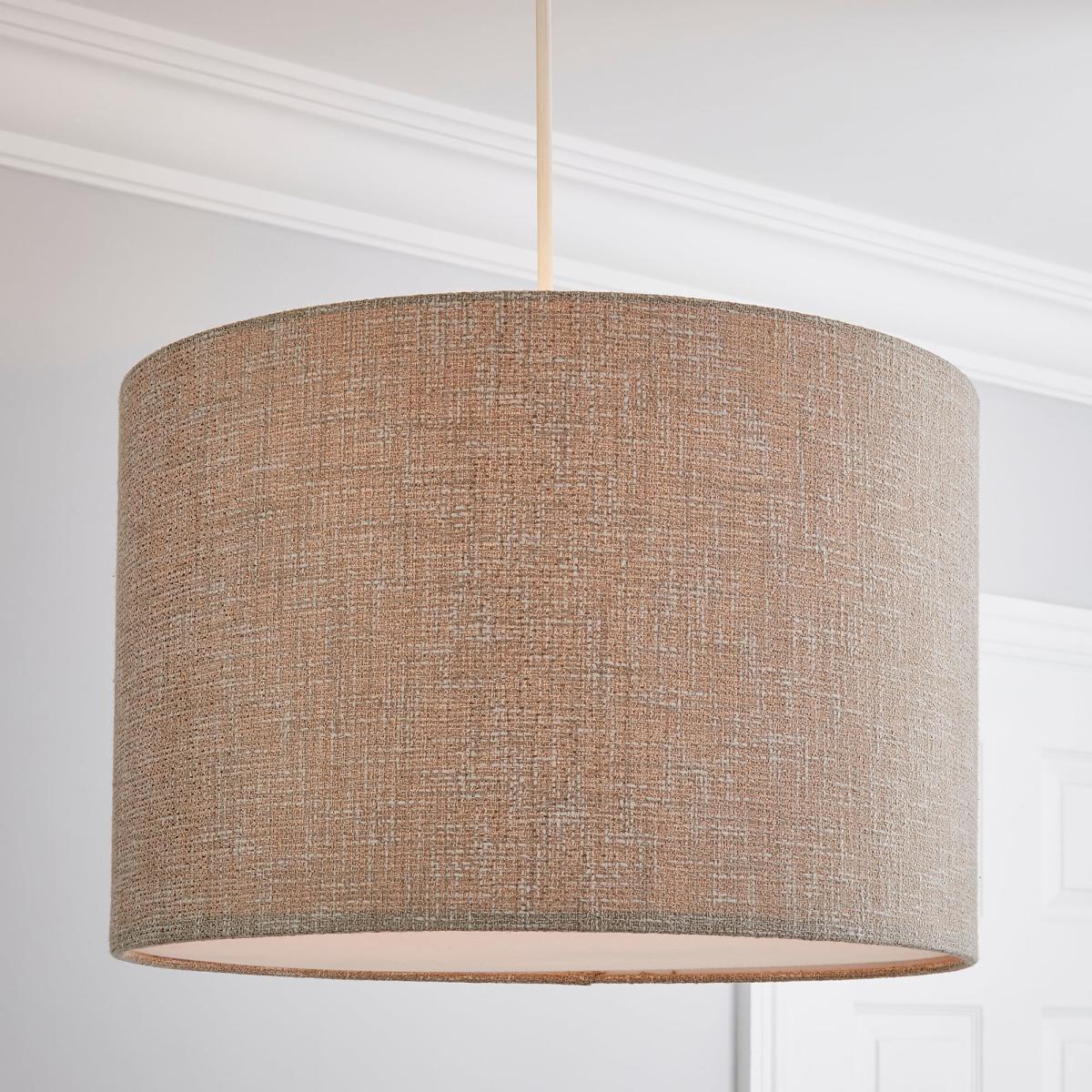 Finished in an attractive boucle fabric, this simple yet stylish 43cm Drum shade features a reversible gimble, making it ideal for use on both ceiling lights and lamps. This shade comes complete with a white diffuser detail and a PVC liner to create a soft glow.