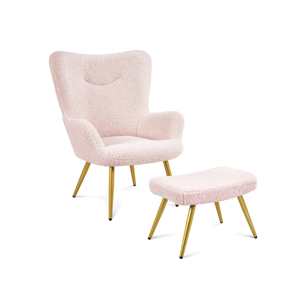 Boucle Accent Chair and Ottoman Set with Golden Legs - Pink