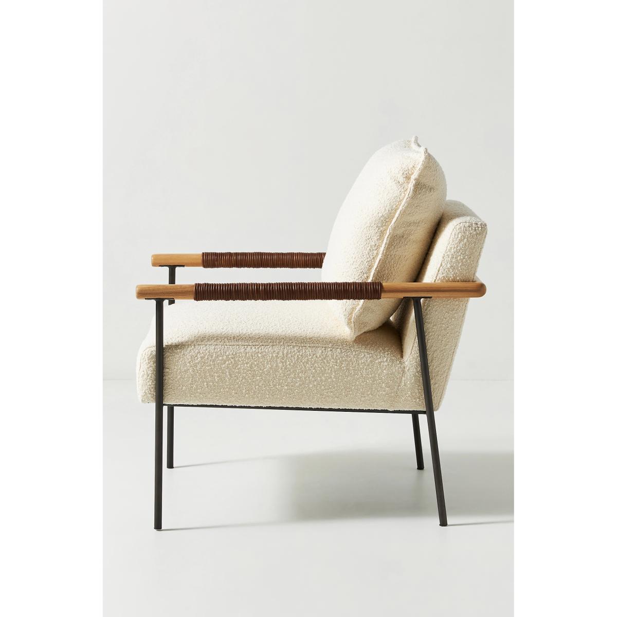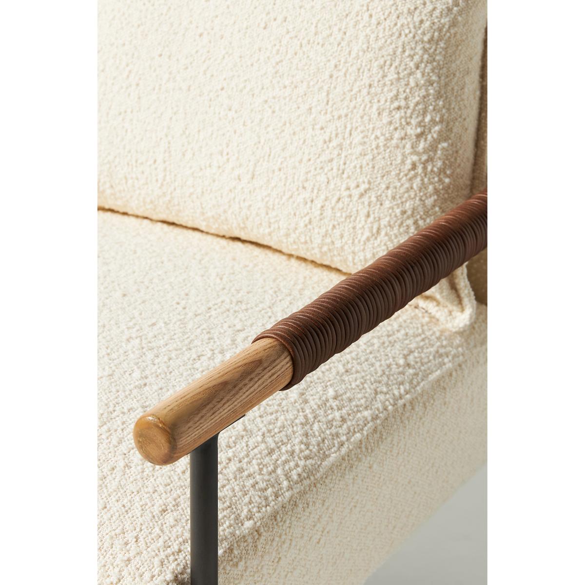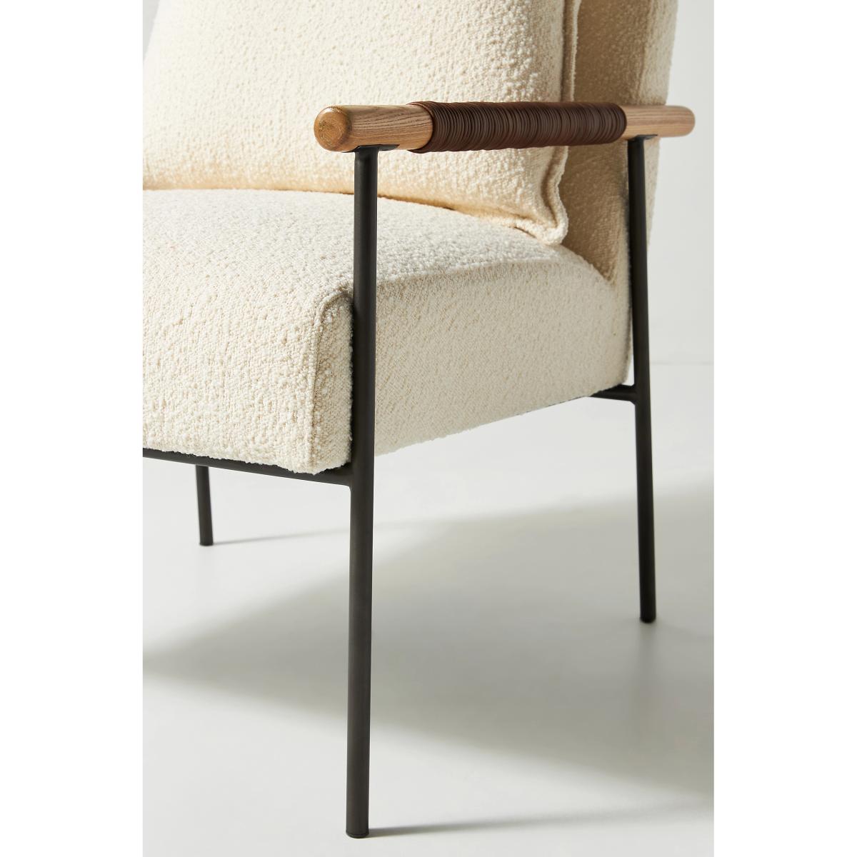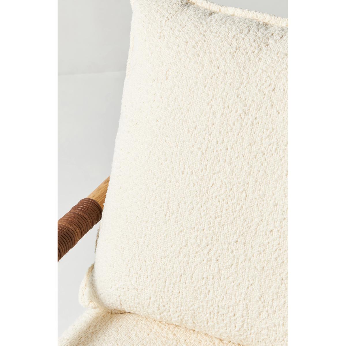 With a deep, sink-into-me seat and a stylish blend of materials, our Atticus Chair features a design you'll appreciate at every angle. Linear ash wood arms wrapped in genuine leather coils offer a warm accent to textured, boucle upholstery, while a slim, steel frame lends a streamlined look that's suited for any contemporary interior. Boucle Atticus Armchair by Anthropologie in White