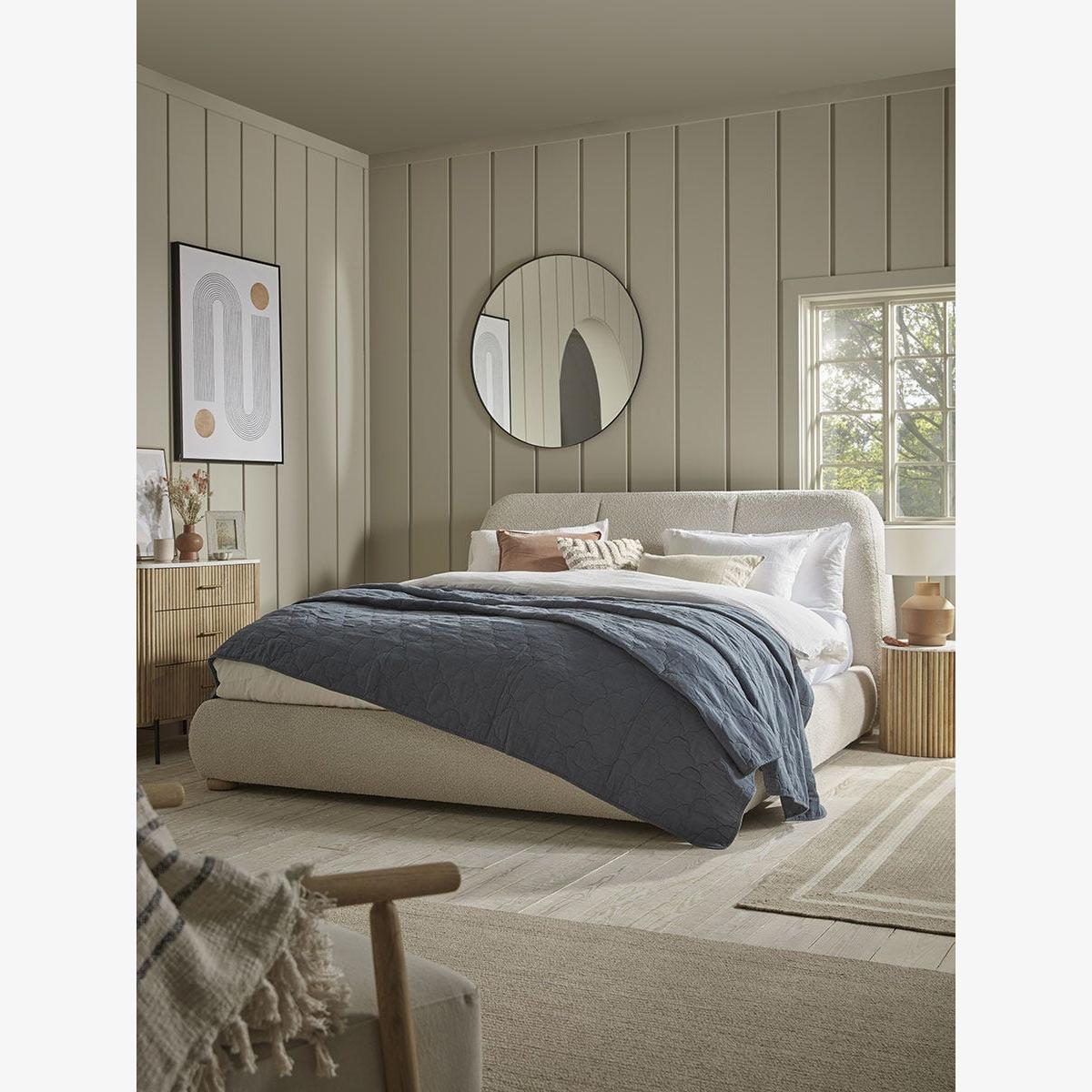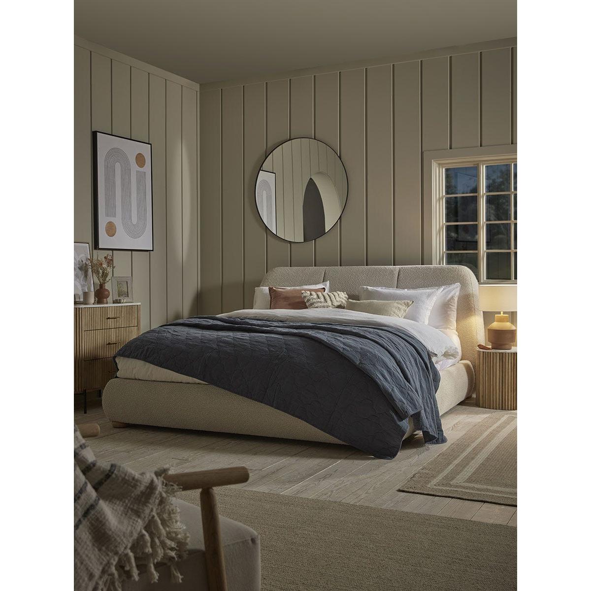 Create the ultimate cosy set up in your bedroom with our Boucle Bed. Curved edges pair with the supersoft boucle fabric, creating a bed that is a snug to touch as it is to get into. Pair with an array of cushions and throws for a room that is full of textural delight.