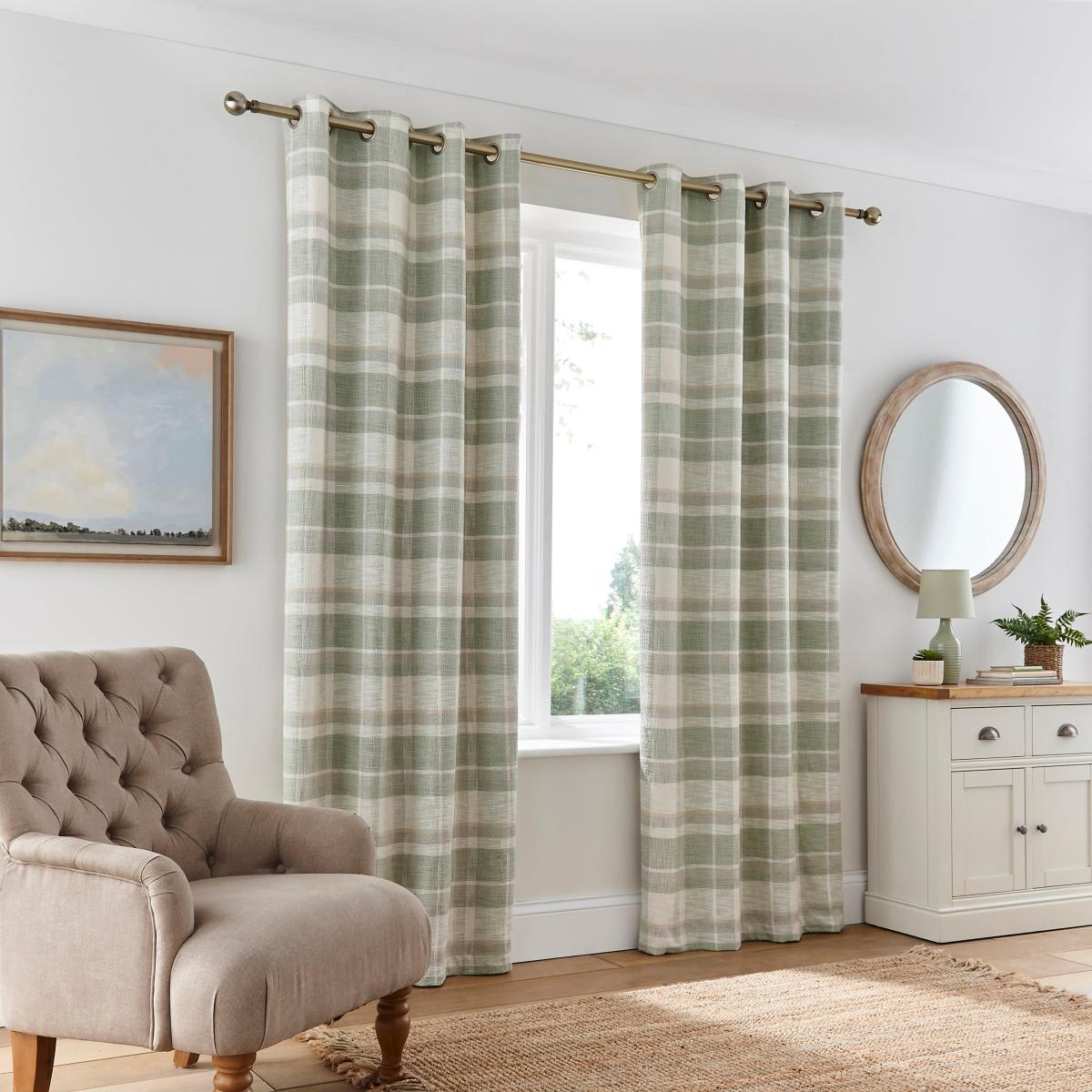 Boucle Check Sage Thermal Eyelet Curtains Sage (Green)