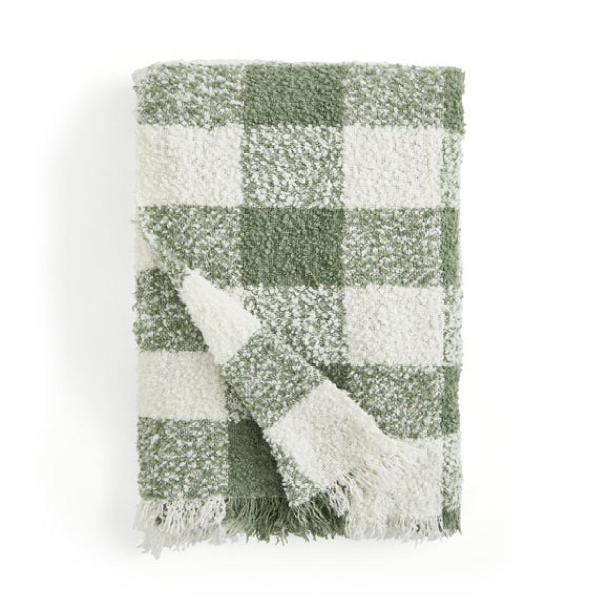 * Check design * Boucle texture * Made from polyester * 130cm x 180cm size Keep warm with the Boucle Check Throw, a soft and fluffy throw designed for use all year round. This throw is a perfect way to add a little extra to your living space and doubles up perfectly as a lovely gift for a friend.