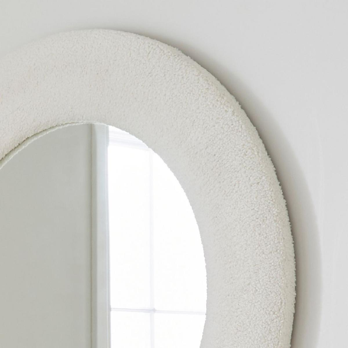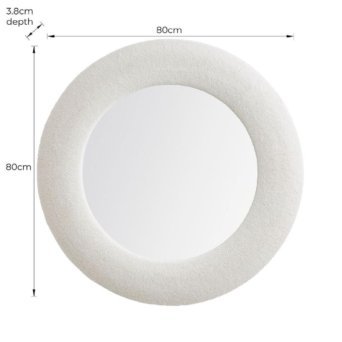 Round 80cm mirror framed in cream bouclé fabric. A soft and stylish statement piece, this round mirror is framed in deep, tactile cream bouclé fabric, blending texture with contemporary simplicity. The bouclé adds a cosy, on-trend touch while the circular shape helps reflect light and create a sense of space. Perfect for adding warmth and modern charm to living rooms, bedrooms or above a hallway console table. Round 80cm mirror framed in cream bouclé fabric. A soft and stylish statement piece, this round mirror is framed in deep, tactile cream bouclé fabric, blending texture with contemporary simplicity. The bouclé adds a cosy, on-trend touch while the circular shape helps reflect light and create a sense of space. Perfect for adding warmth and modern charm to living rooms, bedrooms or above a hallway console table.