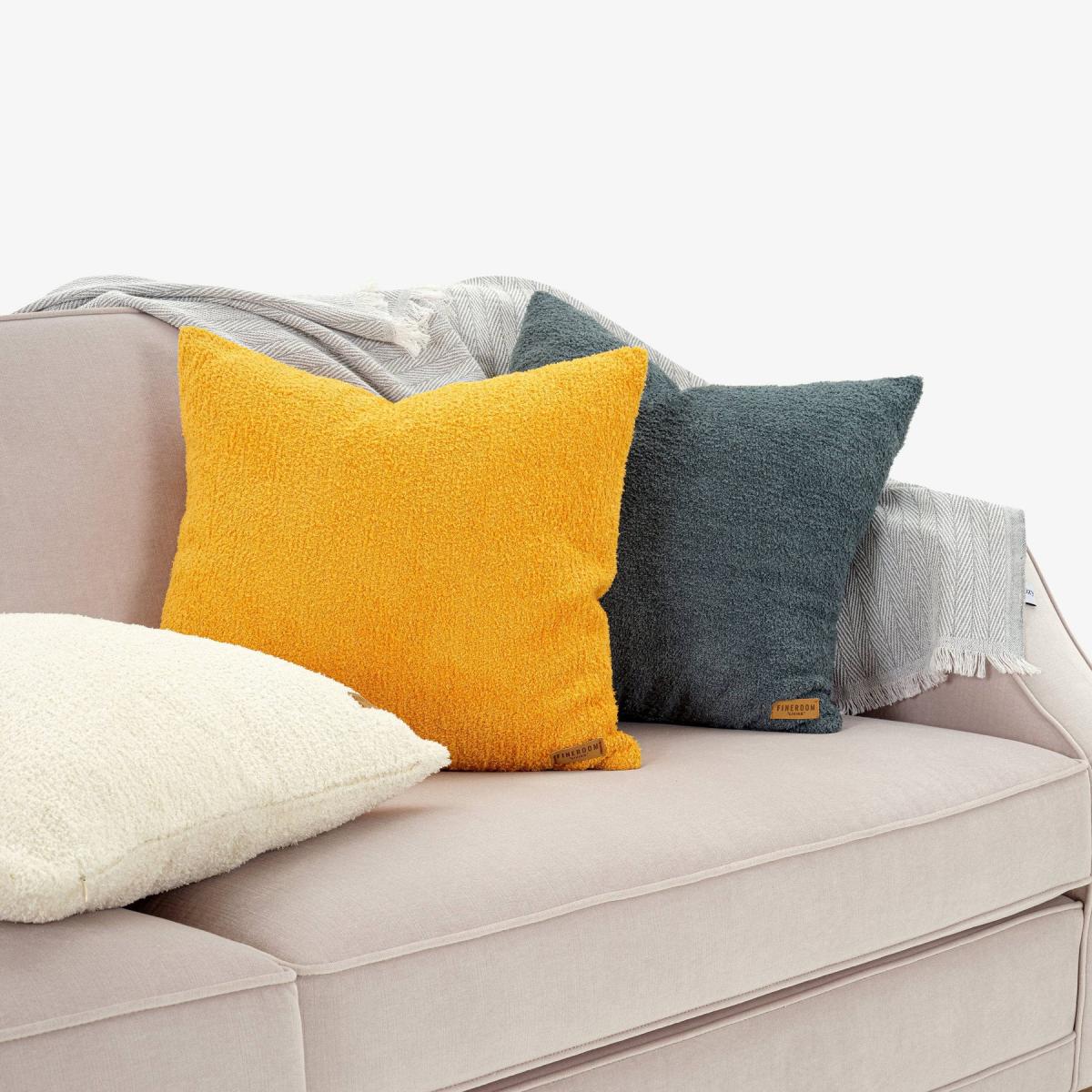 Celebrate the texture of the moment - Boucle. Go with unexpected colour - pair our Yellow against a classic cream sofas for a fresh zing to your living room, or pair with dark Navy, Black or Green sofas for a refreshing twist on this trend.