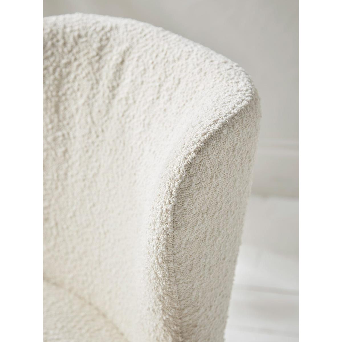 I’m a big fan of this bouclé chair for its mix of texture and clean lines - the soft, nubby fabric brings instant warmth without feeling bulky, while the slender metal legs keep it looking light. It slots straight into Scandi or modern-minimal schemes but equally softens an industrial or monochrome palette. For a cohesive look, pair it with a simple oak or marble-topped table, add a charcoal or clay-coloured runner underneath, and introduce rounded accessories like a ceramic vase or curved mirror to echo the chair’s gentle contours.