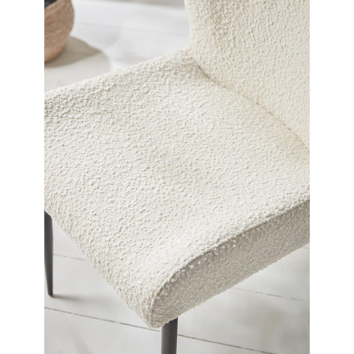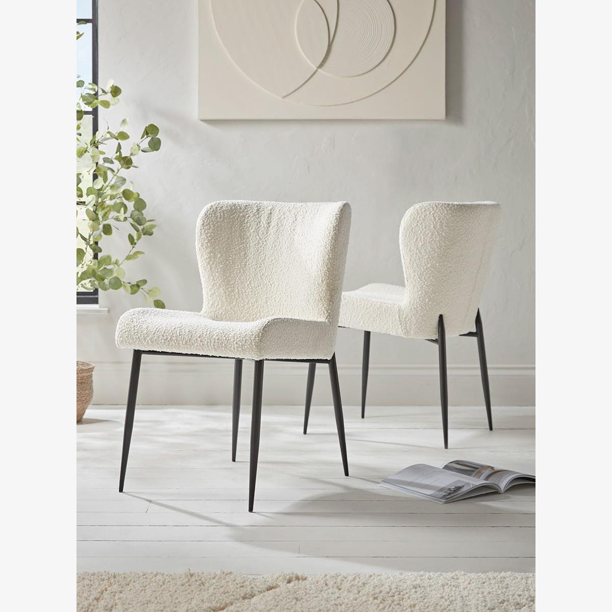 With soft curved edges, our Bouclé dining chair provides comfort and style for your dining space. In a luxurious teddy bear soft bouclé material, the light neutral colour contrasts with the striking black legs, creating a contemporary look. As part of our New Neutral trend, this chair would pair perfectly in a contemporary and minimalist interior scheme.