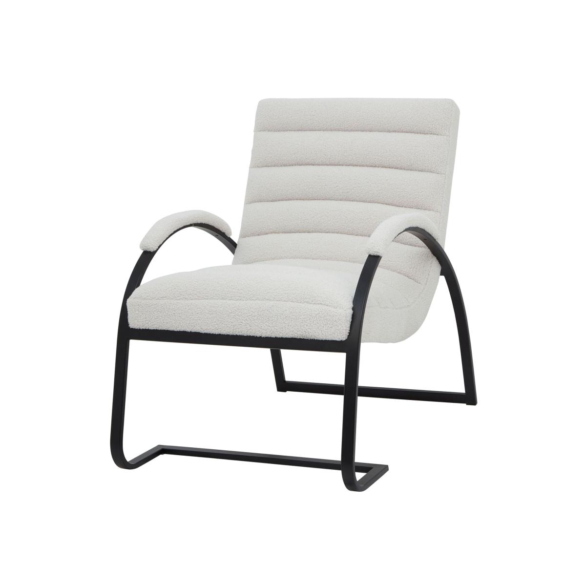 Bring luxurious comfort and architectural interest to your retail collection with this striking Boucle Ribbed Ark Chair. The curved black metal frame creates a dramatic silhouette, while the channeled upholstery in soft cream boucle fabric adds inviting texture and contemporary appeal. Perfect for design-conscious customers seeking statement pieces, this chair masterfully balances visual impact with practical comfort. The gentle rocking motion and ergonomic design make it ideal for modern living spaces, reading nooks, or as an accent piece in bedrooms. Style it alongside minimalist furniture and monochrome accessories for a sophisticated Scandinavian look, or pair with rich textiles and metallic accents for an upscale modern aesthetic. The versatile cream shade complements both warm and cool color schemes, while the distinctive arch design adds architectural flair to any setting. This piece resonates particularly well with urban professionals and interior design enthusiasts who appreciate clean lines and contemporary craftsmanship. Stock this chair to offer your customers a perfect blend of style, comfort, and modern design sensibility. The chair features a durable metal frame construction, premium boucle upholstery, and space-efficient proportions that ensure broad style compatibility and strong consumer appeal across demographics.
