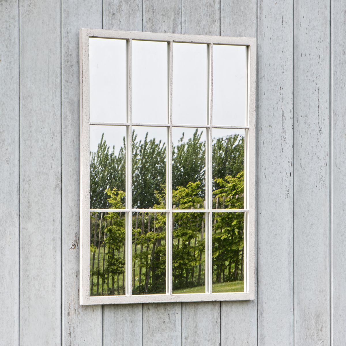 Timeless in style, the Bould outdoor mirror features a window design in a painted white finish. The perfect piece to reflect light around even the smallest of outdoor spaces. Shape: Rectangle. Material: Metal. Colour: White. Mount Type: Wall.