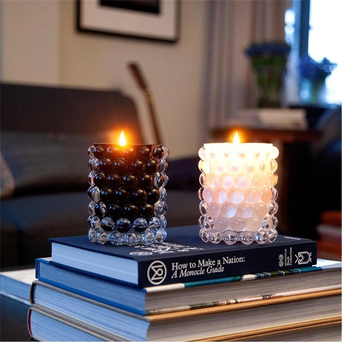 I’m a big fan of that hurricane candle for its sculptural glass design and soft amber glow - it feels at home in both pared-back Scandi schemes and moody, library-style dens. The black bubbled glass adds subtle texture without shouting, so it works equally well on a minimalist sideboard or as part of a layered display on a marble mantel. For styling, place it on a low tray with a couple of brass or ceramic accessories to pick up reflections, or group two of different heights on a coffee table alongside a stack of art books. Its neutral palette means you can slot it into most living areas or even a spa-inspired bathroom, where it will lend a cosy, edited finish without clashing with existing décor.