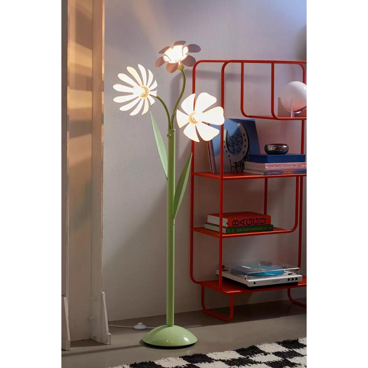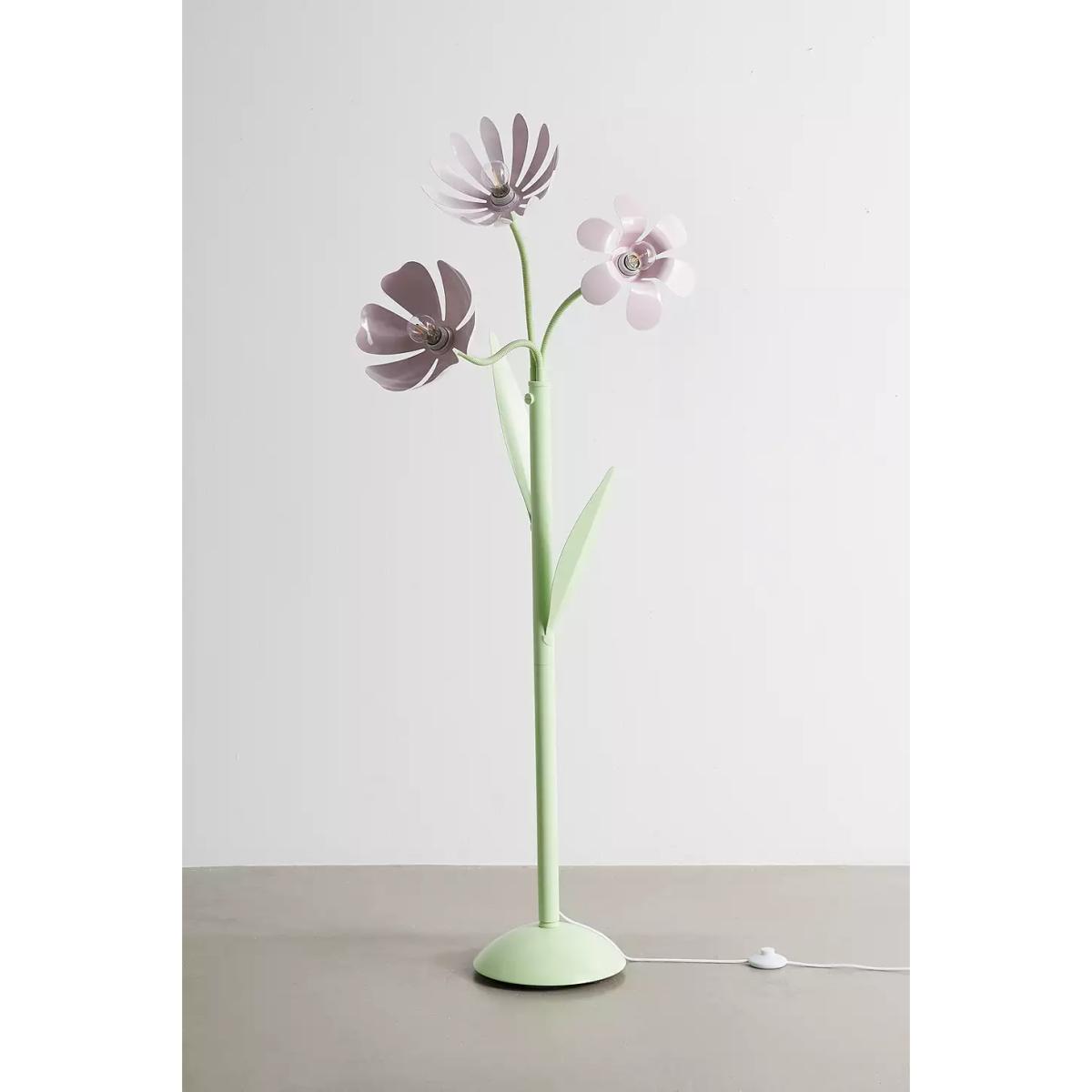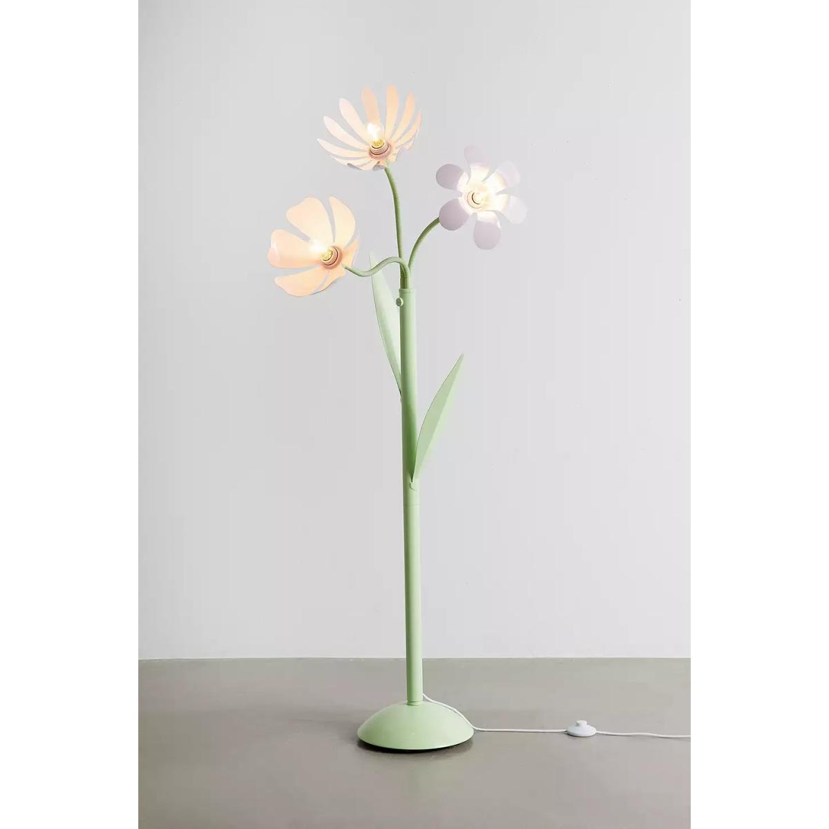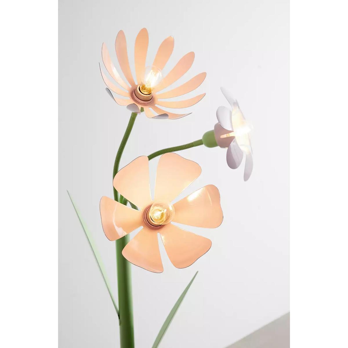 Achieve a bright, blooming bouquet all year round with this floor lamp. The lightweight metal floor lamp features three bulbs with petal details all around, moulded stems and super-cute leave details on the stem base. Finished with a domed base. **Content + Care** \- Assembly required - assembly instructions and hardware included \- Iron \- Wipe clean \- Includes UK plug **Size** \- Wattage/Voltage: 40W/120V \- Overall dimensions: Dia: 28.3cm x H: 159cm \- Base dimensions: Dia: 28.3cm x H: 6.3cm \- Shade dimensions: Dia: 16.5cm x H: 6.3cm \- Cord length: 2.1m \- Weight: 18.5lbs \- Shipping package dimensions: L: 77cm x W: 21cm x H: 114cm \- Shipping package weight: 31.74lbs