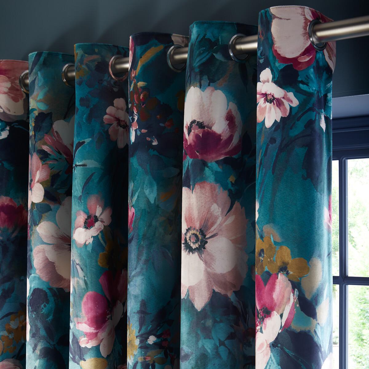 Bouquet Kingfisher Eyelet Lined Ready Made Curtains