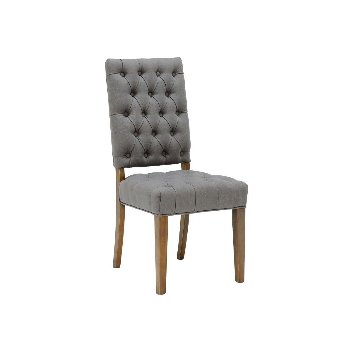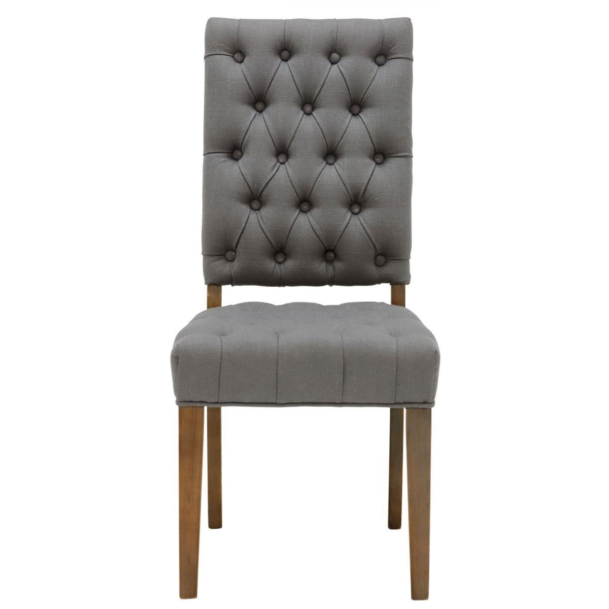 Design. For an elegant appeal in the dining room, opt for the luxurious Bourdin chair. Fully upholstered with a deep button back and seat, this attractive piece features a wooden, weather-effect frame which only adds to its timeless look.