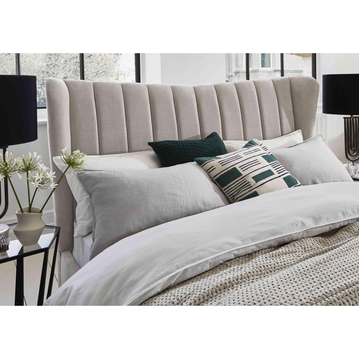 We love everything about this fabulous ottoman bed frame. It looks fabulous and that headboard is a real showstopper. And the ottoman storage space is just so roomy. Why you'll love it This luxurious ottoman bed frame will transform your bedroom. Contemporary elegance with practical storage. Showstopping tall headboard with gently curved wings. Sumptuously cushioned with sophisticated fluting. Set on dark ebony wood feet. Deep base for maximum storage capacity. Breathable slatted base promises a cooler night’s sleep. In a wide choice of upholstery fabrics. Handmade in the UK. The Highgrove Bourne ottoman bed frame is a Furniture Village exclusive. What you need to know Mattress sold separately. Wooden slat support. 28 slats in king size. Ottoman opens at the end. In small double, double, king and super king sizes. Please keep hands clear of the mechanism when opening and closing. Clean regularly using a soft brush or vacuum with the curtain attachment. Deal with any spills promptly. Professional cleaning advised for oil- and grease-based stains. Some fabrics can show wear on areas of more use or in direct sunlight. Flattening and shading of heavy wear areas on pile fabrics like velvet is unavoidable. Be sure to brush pile fabrics only in the direction of the pile. Please read our upholstery care guide for more advice.