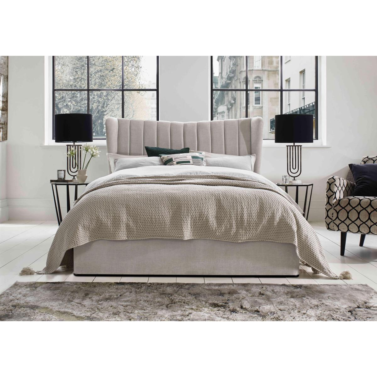We love everything about this fabulous ottoman bed frame. It looks fabulous and that headboard is a real showstopper. And the ottoman storage space is just so roomy. Why you'll love it This luxurious ottoman bed frame will transform your bedroom. Contemporary elegance with practical storage. Showstopping tall headboard with gently curved wings. Sumptuously cushioned with sophisticated fluting. Set on dark ebony wood feet. Deep base for maximum storage capacity. Breathable slatted base promises a cooler night’s sleep. In a wide choice of upholstery fabrics. Handmade in the UK. The Highgrove Bourne ottoman bed frame is a Furniture Village exclusive. What you need to know Mattress sold separately. Wooden slat support. 28 slats in king size. Ottoman opens at the end. In small double, double, king and super king sizes. Please keep hands clear of the mechanism when opening and closing. Clean regularly using a soft brush or vacuum with the curtain attachment. Deal with any spills promptly. Professional cleaning advised for oil- and grease-based stains. Some fabrics can show wear on areas of more use or in direct sunlight. Flattening and shading of heavy wear areas on pile fabrics like velvet is unavoidable. Be sure to brush pile fabrics only in the direction of the pile. Please read our upholstery care guide for more advice.