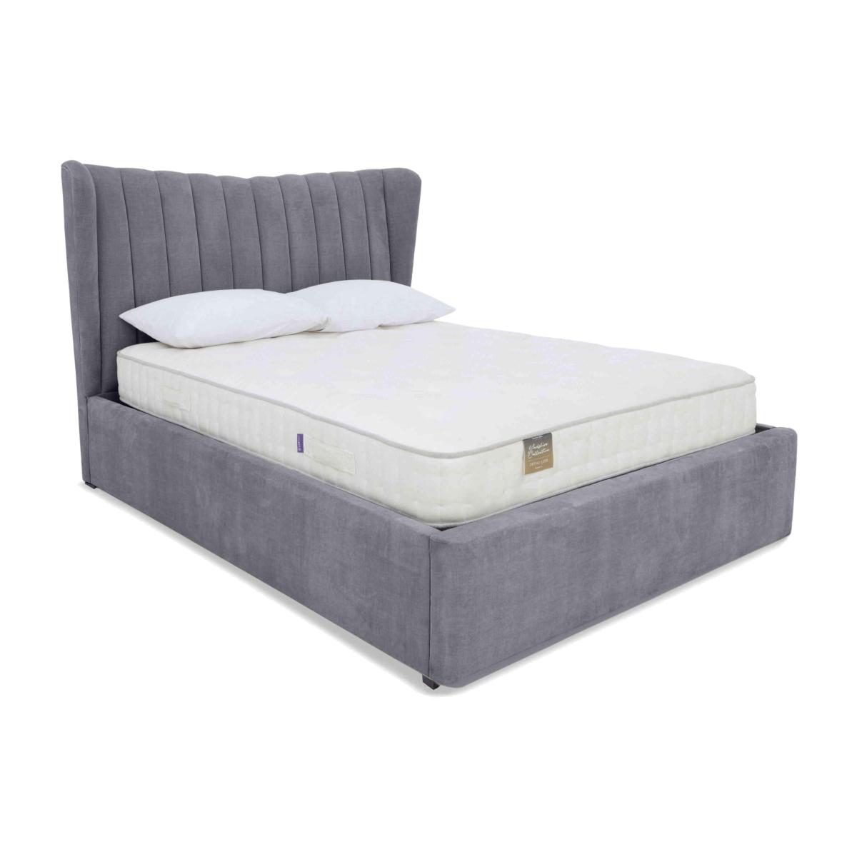 We love everything about this fabulous ottoman bed frame. It looks fabulous and that headboard is a real showstopper. And the ottoman storage space is just so roomy. Why you'll love it This luxurious ottoman bed frame will transform your bedroom. Contemporary elegance with practical storage. Showstopping tall headboard with gently curved wings. Sumptuously cushioned with sophisticated fluting. Set on dark ebony wood feet. Deep base for maximum storage capacity. Breathable slatted base promises a cooler night’s sleep. In a wide choice of upholstery fabrics. Handmade in the UK. The Highgrove Bourne ottoman bed frame is a Furniture Village exclusive. What you need to know Mattress sold separately. Wooden slat support. 28 slats in king size. Ottoman opens at the end. In small double, double, king and super king sizes. Please keep hands clear of the mechanism when opening and closing. Clean regularly using a soft brush or vacuum with the curtain attachment. Deal with any spills promptly. Professional cleaning advised for oil- and grease-based stains. Some fabrics can show wear on areas of more use or in direct sunlight. Flattening and shading of heavy wear areas on pile fabrics like velvet is unavoidable. Be sure to brush pile fabrics only in the direction of the pile. Please read our upholstery care guide for more advice.