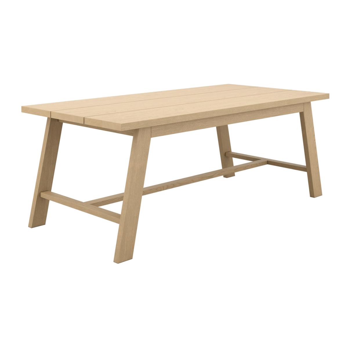 The Bourton dining table features a matte latte wood grain finish and a realistic wood veneer with alpi end grain effect. Its modern design and neutral colour seamlessly fit any design scheme, comfortably seating up to 8 people.