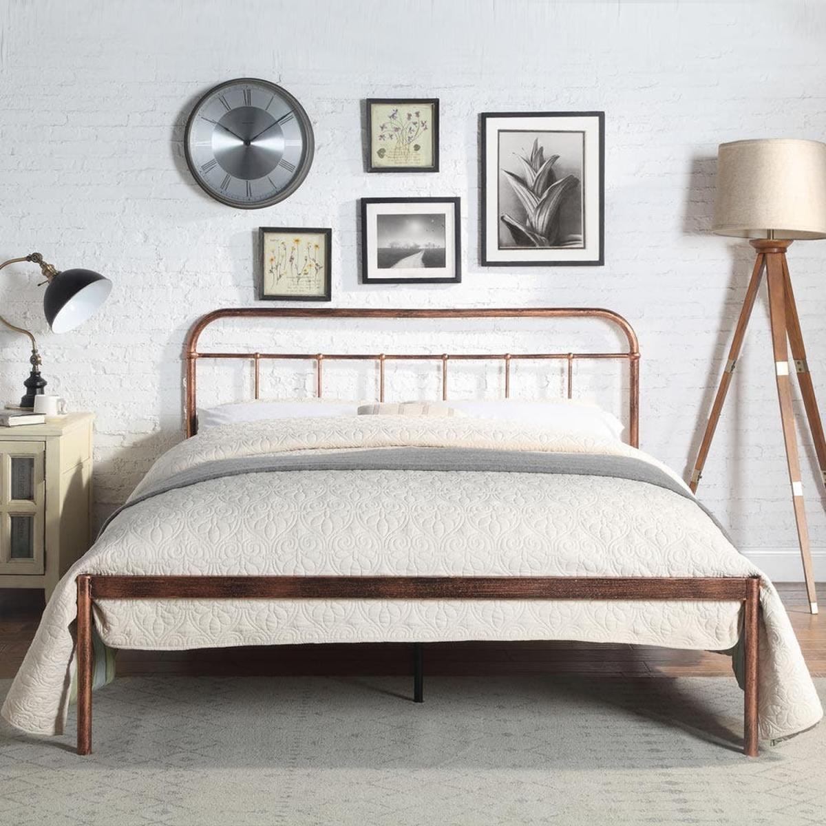 Our stunning Bourton copper bed frame is waiting to give your bedroom a modern makeover. Its brushed copper finish is bang on trend and adds a pop of warm colour. The bed design is ideal for compact bedrooms, as the low footboard helps give the feeling of more space, whilst the curved headboard maintains the style and gives the room a focal point. Available in double and king sizes, this is the perfect bed for any main bedroom or master suite. The bed is fitted with a sprung slat system to help enhance the natural bounce of your mattress.