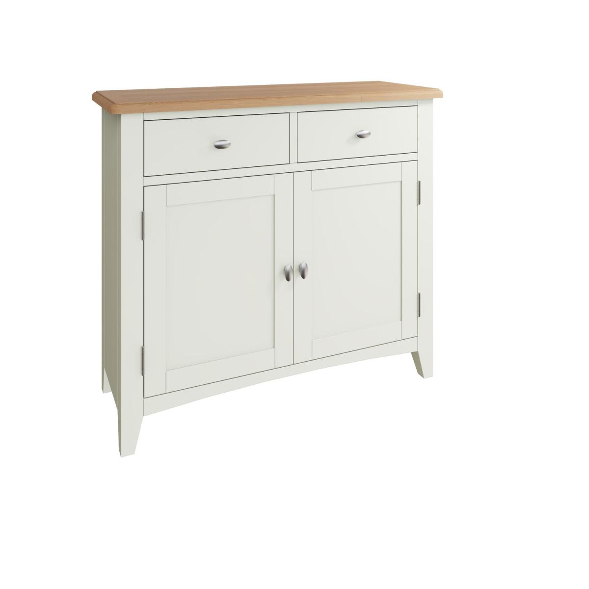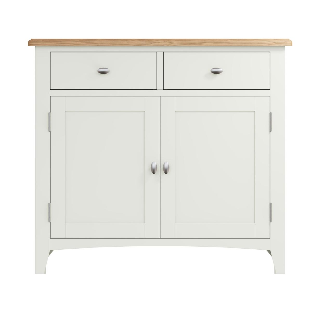 The Bourton white and oak range combines country classic looks with a contemporary charm. This Bourton double door sideboard will make a rustic and stylish addition to your home. The generous rectangular top provides you with shelf space, whilst the stylishly finished drawers and doors conceal ample storage space.