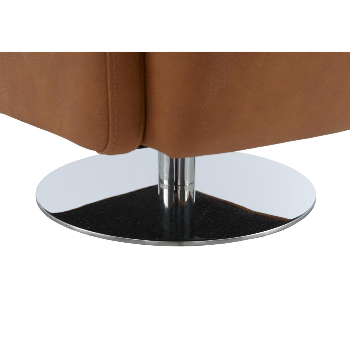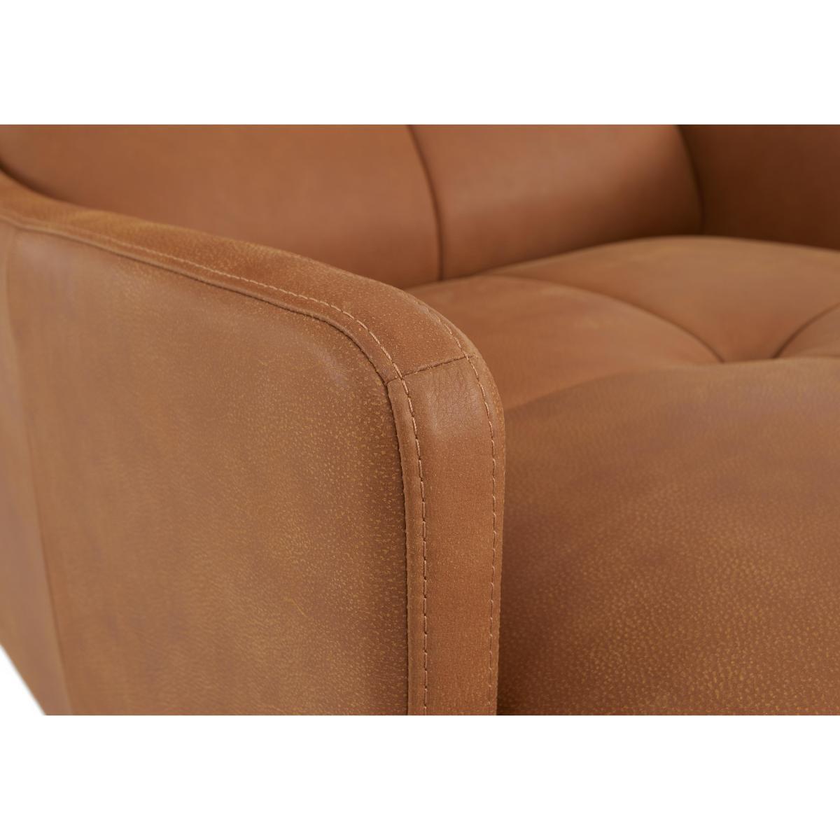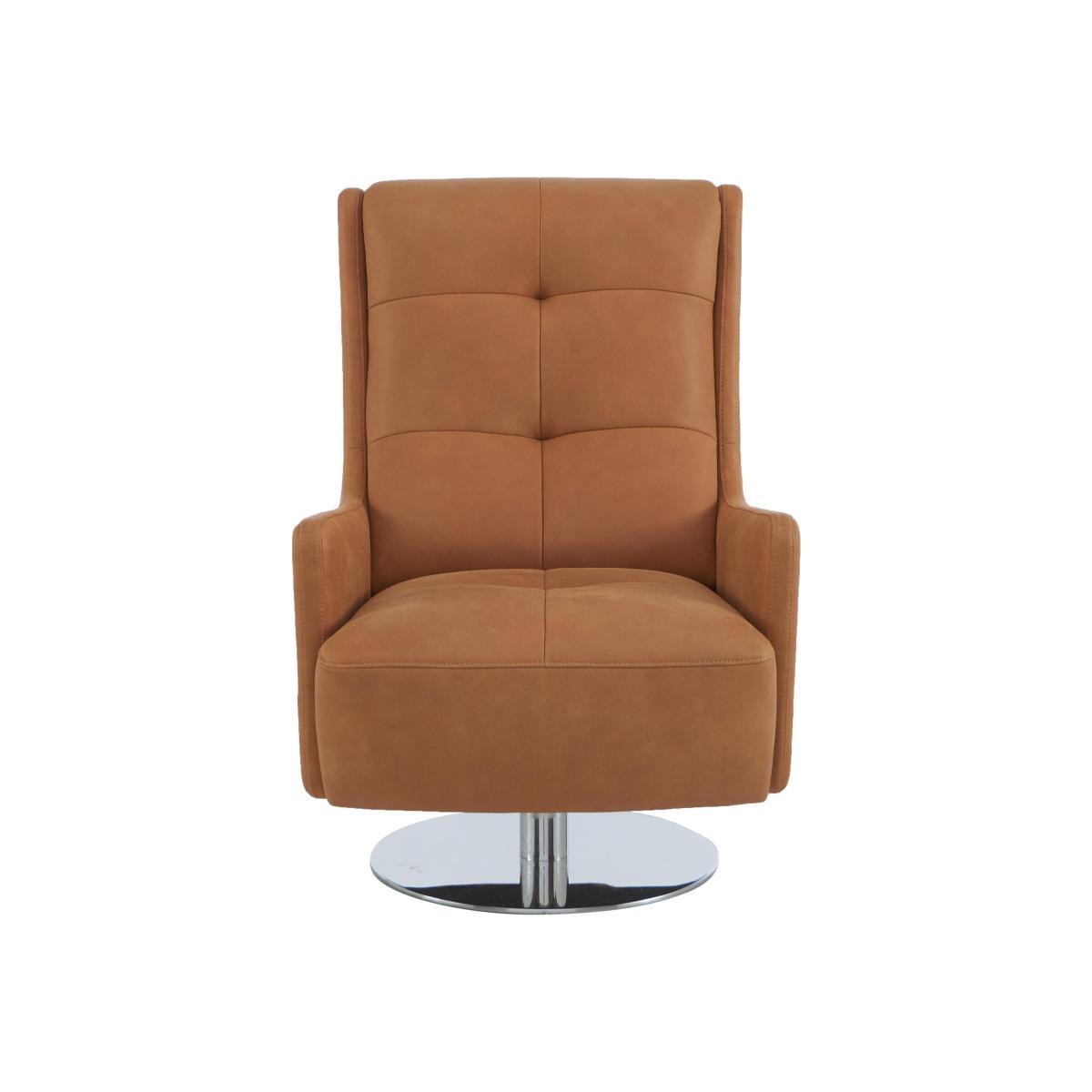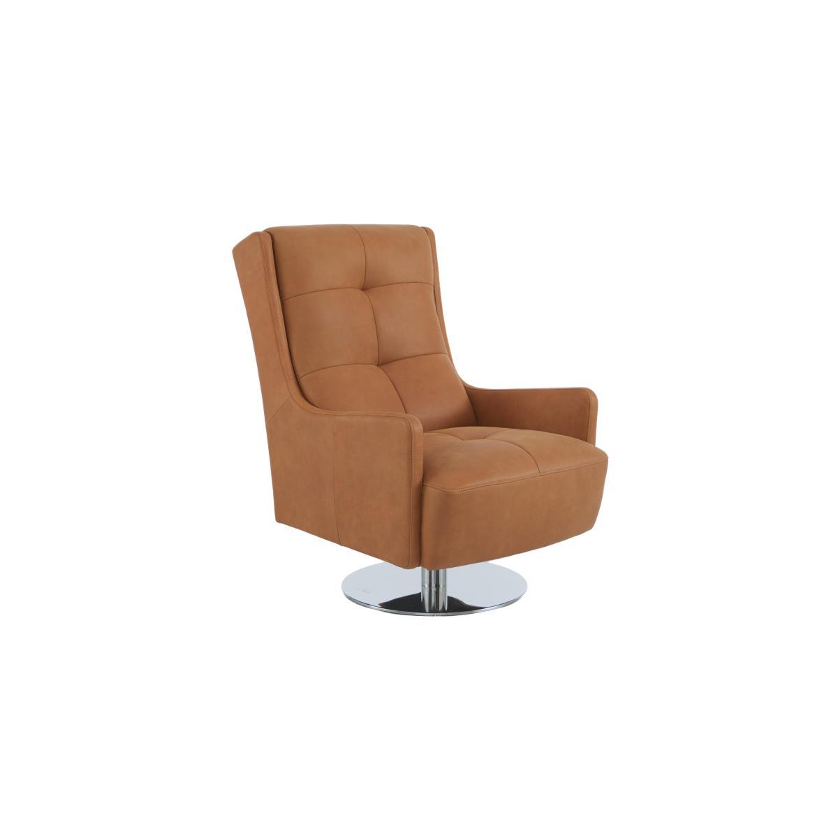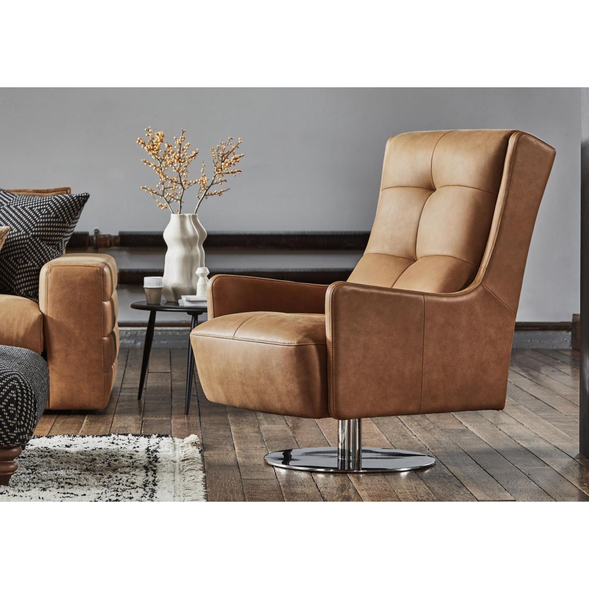 Made for movies marathons and boxset binges, the Boutique Brando range is the ultimate lounge-ready sofa for all the family. Deep, sink-into seats (we’re talking kick-your-shoes-off comfort) and dapper good looks make this comfy chill spot perfect for the hours you’re glued to your favourite TV show. Handmade exclusively for Furniture Village, it features real semi-aniline leather upholstery and a buttoned seat design which prevents puddling. Fibre, sprung pockets and foam seat interiors keep you comfy and those statement boxy arms? So chic. There’s even a choice of two stylish, extra-large footstools so the whole family can put their feet up in comfort. The Boutique Brando leather swivel accent chair has got us all in a spin. We’re sure its super-comfy deep seat, dapper good looks and real leather comfort have nothing to do with it…. Why you'll love it. A big hug in sofa form, this leather swivel accent chair is made for all-day lounging. Super-sized design for proper stretching out. Relaxed industrial feel with dapper good looks. Statement boxy arms with stitching detail. A beautifully soft semi-aniline leather that feels like fabric. A sleek buttoned seat design prevents puddling and keeps seats plump. Handmade exclusively for Furniture Village. What you need to know. Medium comfort level. Seat suspension: Sprung with a firm front edge. Seat cushions: Foam with sprung pockets and fibre wrap. Back cushions: Fibre. Leather has unique marks and characteristics with variance in colour and texture, and softens with use. Smoothing the cushioned top directly after use helps prevent ‘puddling’. Please read our upholstery care guide for more advice. This sofa is large. Please double check it will fit through any doorways and hallways in your home. Part of the Boutique Brando range.
