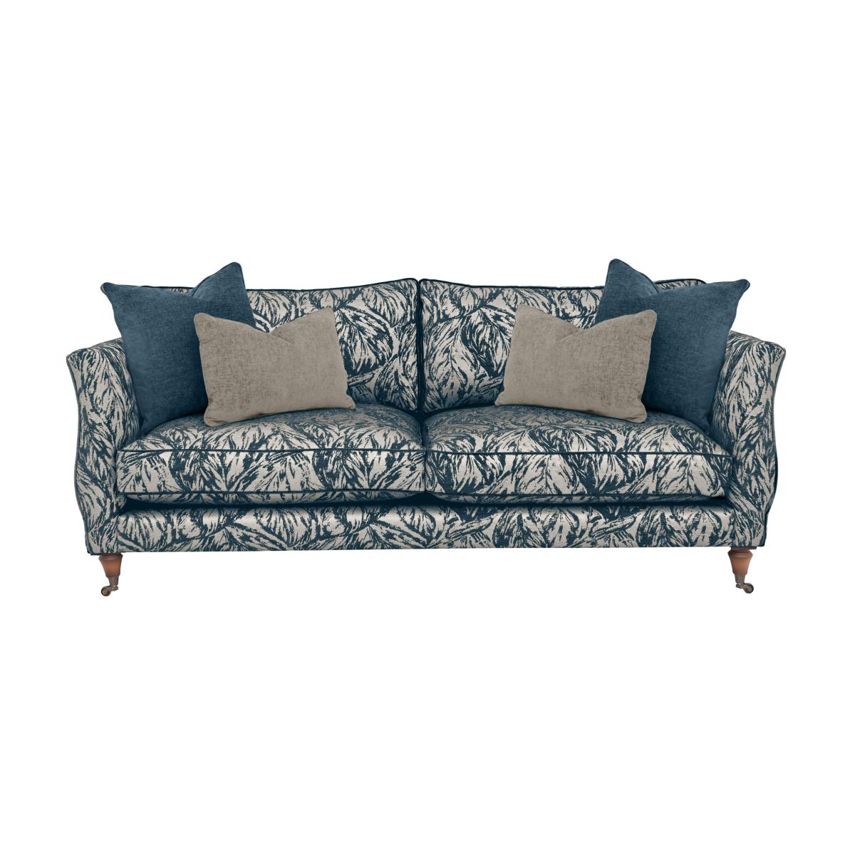 A new age of elegance has arrived. The handcrafted Boutique Chatterley range, part of our Boutique Collection, displays grace and grandeur at every turn, drawing inspiration from traditional British sofa style. You’ll find charming drop down Knole arms secured by wooden finials and silken cords with tassels, slender curved arms, scroll backs and turned wood legs. You’ll also enjoy the way this range embraces modern comfort in its generous proportions, sprung seats, sumptuous sink-in cushioning, and complimentary feather-filled scatters and bolsters. Pieces are available in a choice of hand-picked fabrics and carefully edited colour palettes. The Boutique Chatterley range is exclusively available at Furniture Village. From its curved arms and turned wood legs to its sprung seats and feather cushioning, this traditional handcrafted 4-seater sofa delivers elegant style and superb comfort. Handmade. Why you'll love it Beautiful 4-seater fabric sofa harkens back to a golden age of furniture design. Traditional British elegance, extraordinary attention to detail. Upholstered by hand in a collection of exceptional fabrics and beautiful colourways. Choose Bolero, a soft, vintage-look chenille, or Canopy, a satin with a woven leaf pattern. The generous sprung seats have feather and fibre cushioning for sink-in softness. With 2 feather scatter cushions and 2 feather bolster cushions. Choice of turned wood leg colour with optional castors. Sturdy frame is built by hand and comes with a 10-year guarantee. Exclusive to Furniture Village. This 4-seater sofa is part of the Boutique Chatterley range. What you need to know Medium comfort level. Seat suspension: zig-zag springs. Seat cushioning: fibre and feather. Seat cushions are reversible. Back support: elasticated webbing. Back cushioning: fibre and feather. Back cushions are reversible. If you choose a Bolero fabric, the bolster cushions will be in the same fabric. The scatter cushions will have coordinating Canopy fabric fronts, and Bolero fabric backs and piping. If you choose a Canopy fabric, the bolster cushions will be in a coordinating Bolero fabric. The scatter cushions will have Canopy fabric fronts, and coordinating Bolero fabric backs and piping. Allergies? This sofa and its scatter and bolster cushions can be made with fibre filling. Feet are removable. Plump sofa cushions daily to maintain fullness. Some fabrics can show wear on areas of more use or in direct sunlight. Clean regularly using a soft brush or vacuum with the curtain attachment. Deal with any spills promptly. Professional cleaning advised for oil- and grease-based stains. Please read our upholstery care guide for more advice.