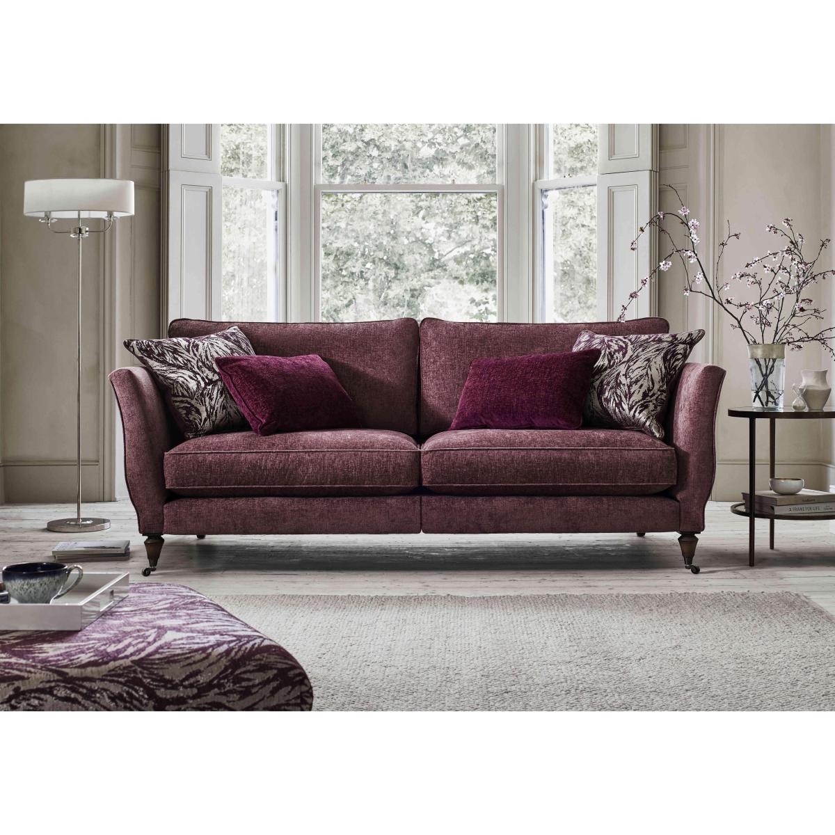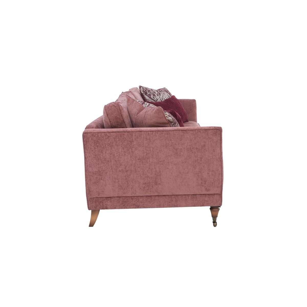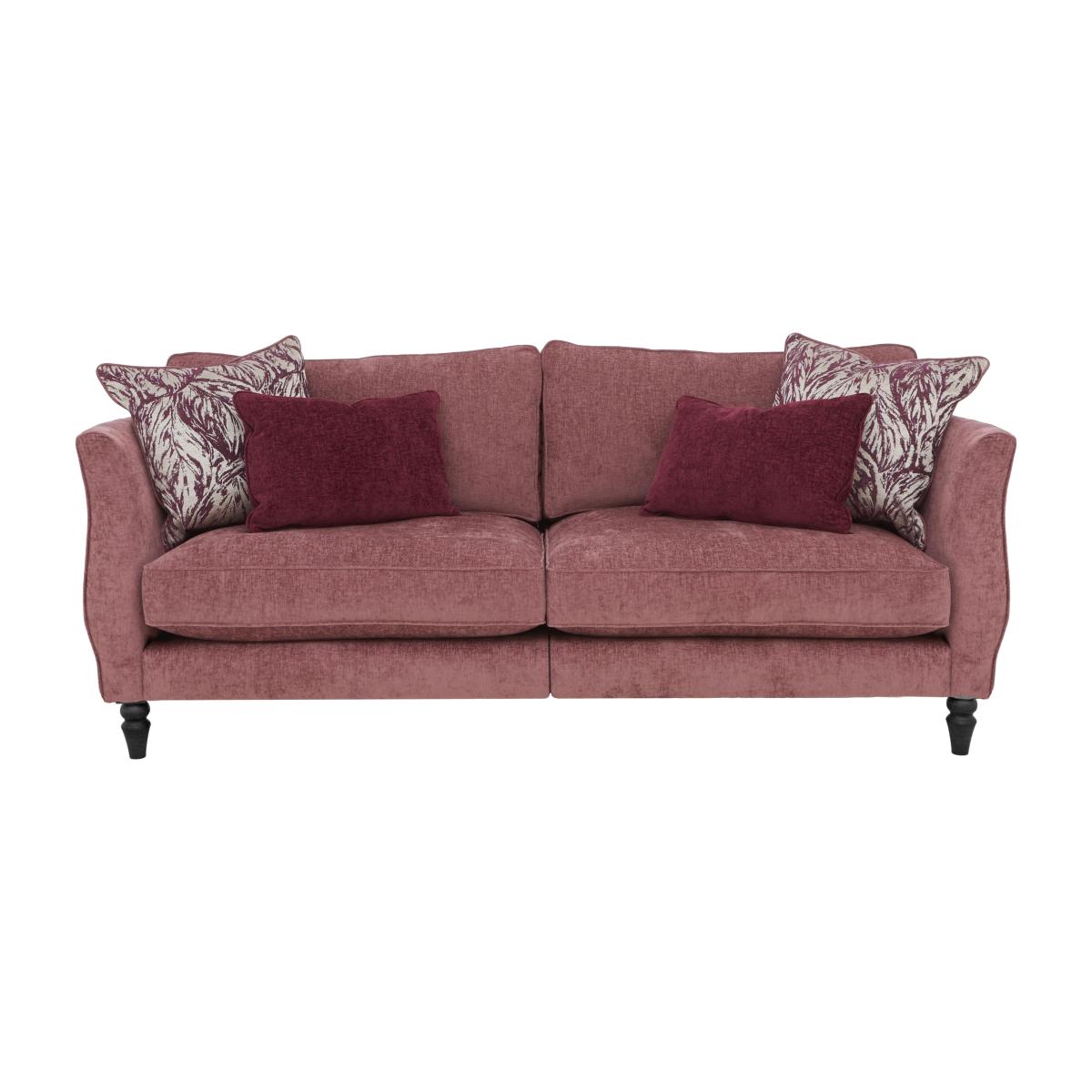 A new age of elegance has arrived. The handcrafted Boutique Chatterley range, part of our Boutique Collection, displays grace and grandeur at every turn, drawing inspiration from traditional British sofa style. You’ll find charming drop down Knole arms secured by wooden finials and silken cords with tassels, slender curved arms, scroll backs and turned wood legs. You’ll also enjoy the way this range embraces modern comfort in its generous proportions, sprung seats, sumptuous sink-in cushioning, and complimentary feather-filled scatters and bolsters. Pieces are available in a choice of hand-picked fabrics and carefully edited colour palettes. The Boutique Chatterley range is exclusively available at Furniture Village. This beautiful handmade sofa combines traditional style with modern comfort – sprung seats and feather cushioning – and convenience. Its split frame makes it easy to bring home. Why you'll love it Classic curves meet superb comfort in this 4-seater split frame fabric sofa. Traditional British elegance, extraordinary attention to detail. Upholstered by hand in a collection of exceptional fabrics and beautiful colourways. Choose Bolero, a soft, vintage-look chenille, or Canopy, a satin with a woven leaf pattern. The generous sprung seats have feather and fibre cushioning for sink-in softness. With 2 feather scatter cushions and 2 feather bolster cushions. Choice of turned wood leg colour with optional castors. Sturdy frame is built by hand and comes with a 10-year guarantee. Exclusive to Furniture Village. This 4-seater split frame sofa is part of the Boutique Chatterley range. What you need to know Medium comfort level. Seat suspension: zig-zag springs. Seat cushioning: fibre and feather. Seat cushions are reversible. Back support: elasticated webbing. Back cushioning: fibre and feather. Back cushions are reversible. If you choose a Bolero fabric, the bolster cushions will be in the same fabric. The scatter cushions will have coordinating Canopy fabric fronts, and Bolero fabric backs and piping. If you choose a Canopy fabric, the bolster cushions will be in a coordinating Bolero fabric. The scatter cushions will have Canopy fabric fronts, and coordinating Bolero fabric backs and piping. Allergies? This sofa and its scatter and bolster cushions can be made with fibre filling. This large sofa has a split frame for easier access. Feet are removable. Plump sofa cushions daily to maintain fullness. Some fabrics can show wear on areas of more use or in direct sunlight. Clean regularly using a soft brush or vacuum with the curtain attachment. Deal with any spills promptly. Professional cleaning advised for oil- and grease-based stains. Please read our upholstery care guide for more advice.