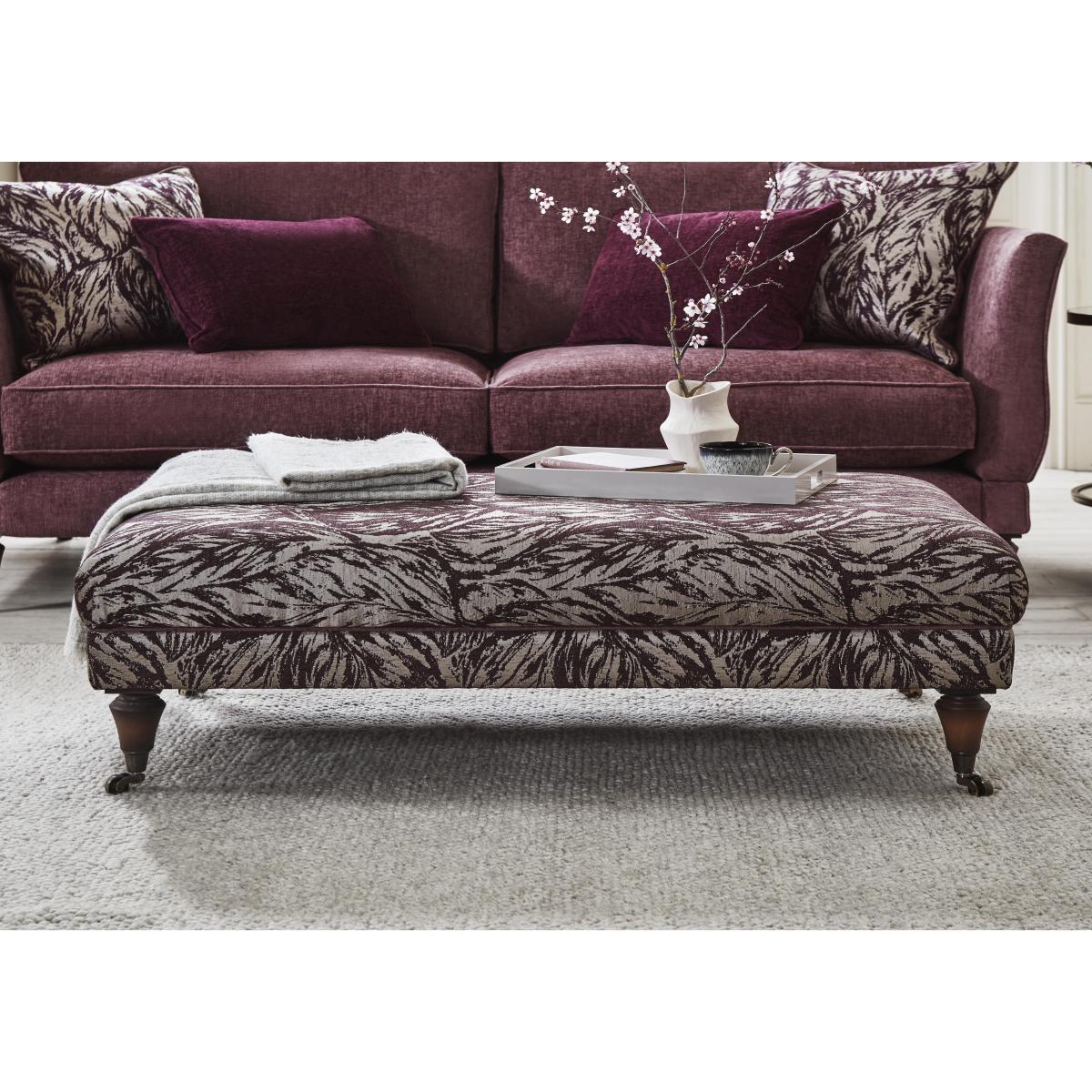 A new age of elegance has arrived. The handcrafted Boutique Chatterley range, part of our Boutique Collection, displays grace and grandeur at every turn, drawing inspiration from traditional British sofa style. You’ll find charming drop down Knole arms secured by wooden finials and silken cords with tassels, slender curved arms, scroll backs and turned wood legs. You’ll also enjoy the way this range embraces modern comfort in its generous proportions, sprung seats, sumptuous sink-in cushioning, and complimentary feather-filled scatters and bolsters. Pieces are available in a choice of hand-picked fabrics and carefully edited colour palettes. The Boutique Chatterley range is exclusively available at Furniture Village. The Boutique Chatterley footstool is definitely more than a place to rest your feet. Set on elegant turned legs, its elongated proportions give it a quiet presence in any living space. Handmade. Why you'll love it This very wide footstool is a stylish and practical addition to your home. Traditional British elegance, extraordinary attention to detail. Upholstered by hand in a collection of exceptional fabrics and beautiful colourways. Choose Bolero, a soft, vintage-look chenille, or Canopy, a satin with a woven leaf pattern. Generous sprung top with feather and fibre cushioning. Choice of turned wood leg colour with optional castors. Sturdy frame is built by hand and comes with a 10-year guarantee. Exclusive to Furniture Village. This footstool is part of the Boutique Chatterley range. What you need to know Medium comfort level. Suspension: zig-zag springs. Cushioning: fibre and feather. Allergies? This footstool can be made with fibre filling. Feet are removable. Some fabrics can show wear on areas of more use or in direct sunlight. Clean regularly using a soft brush or vacuum with the curtain attachment. Deal with any spills promptly. Professional cleaning advised for oil- and grease-based stains. Please read our upholstery care guide for more advice.
