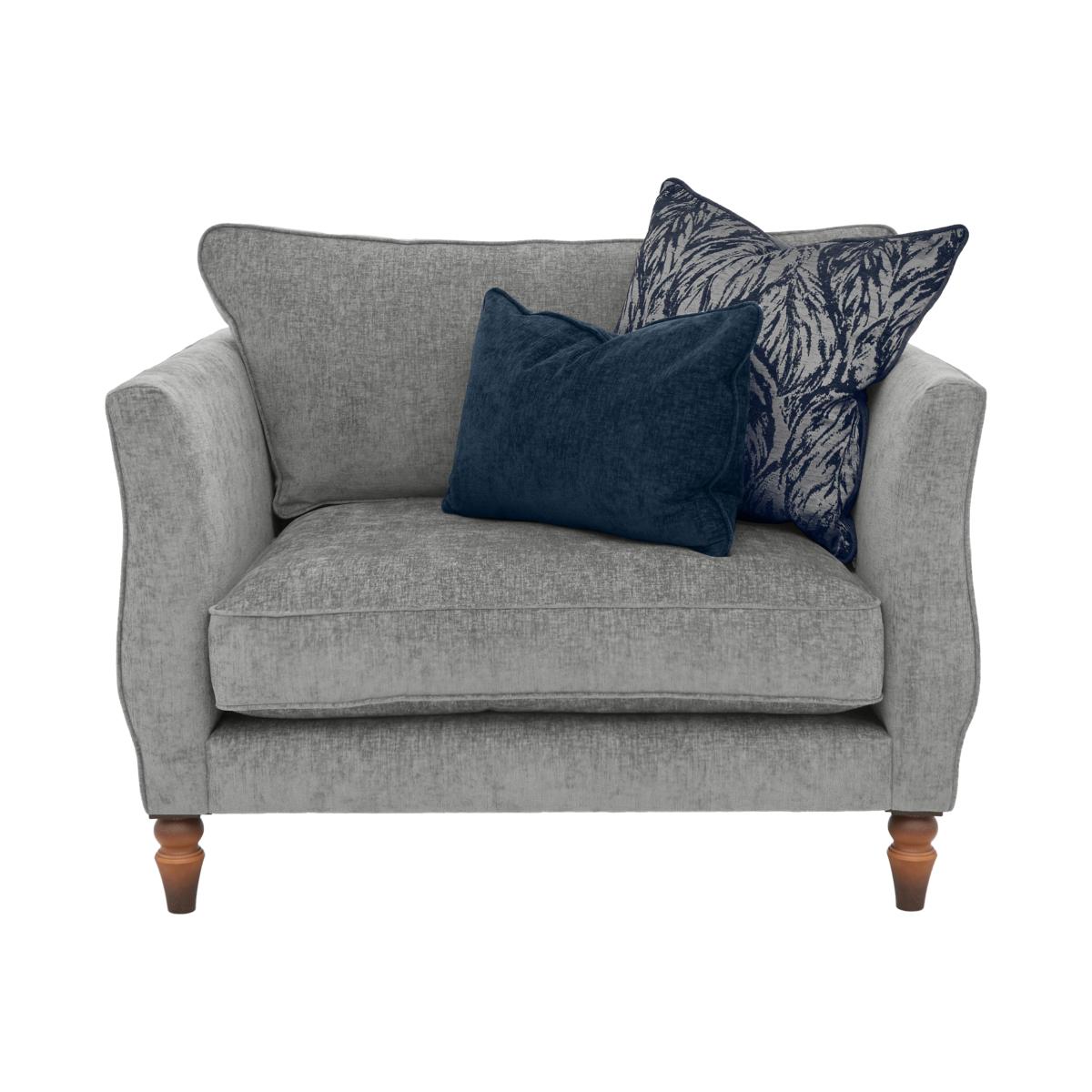 A new age of elegance has arrived. The handcrafted Boutique Chatterley range, part of our Boutique Collection, displays grace and grandeur at every turn, drawing inspiration from traditional British sofa style. You’ll find charming drop down Knole arms secured by wooden finials and silken cords with tassels, slender curved arms, scroll backs and turned wood legs. You’ll also enjoy the way this range embraces modern comfort in its generous proportions, sprung seats, sumptuous sink-in cushioning, and complimentary feather-filled scatters and bolsters. Pieces are available in a choice of hand-picked fabrics and carefully edited colour palettes. The Boutique Chatterley range is exclusively available at Furniture Village. There’s room for you and a friend to enjoy elegant style and sumptuous comfort thanks to this beautifully handcrafted snuggler chair. Only at Furniture Village. Why you'll love it Make yourself at home on this roomy and inviting snuggler chair. Traditional British elegance, extraordinary attention to detail. Upholstered by hand in a collection of exceptional fabrics and beautiful colourways. Choose Bolero, a soft, vintage-look chenille, or Canopy, a satin with a woven leaf pattern. The generous sprung seat has feather and fibre cushioning for sink-in softness. With a feather scatter cushion and a feather bolster cushion. Choice of turned wood leg colour with optional castors. Sturdy frame is built by hand and comes with a 10-year guarantee. Exclusive to Furniture Village. This snuggler is part of the Boutique Chatterley range. What you need to know Medium comfort level. Seat suspension: zig-zag springs. Seat cushioning: fibre and feather. Seat cushion is reversible. Back support: elasticated webbing. Back cushioning: fibre and feather. Back cushion is reversible. If you choose a Bolero fabric, the bolster cushion will be in the same fabric. The scatter cushion will have coordinating Canopy fabric fronts, and Bolero fabric backs and piping. If you choose a Canopy fabric, the bolster cushion will be in a coordinating Bolero fabric. The scatter cushion will have Canopy fabric fronts, and coordinating Bolero fabric backs and piping. Allergies? This snuggler and its scatter and bolster cushions can be made with fibre filling. Feet are removable. Plump snuggler cushions daily to maintain fullness. Some fabrics can show wear on areas of more use or in direct sunlight. Clean regularly using a soft brush or vacuum with the curtain attachment. Deal with any spills promptly. Professional cleaning advised for oil- and grease-based stains. Please read our upholstery care guide for more advice.