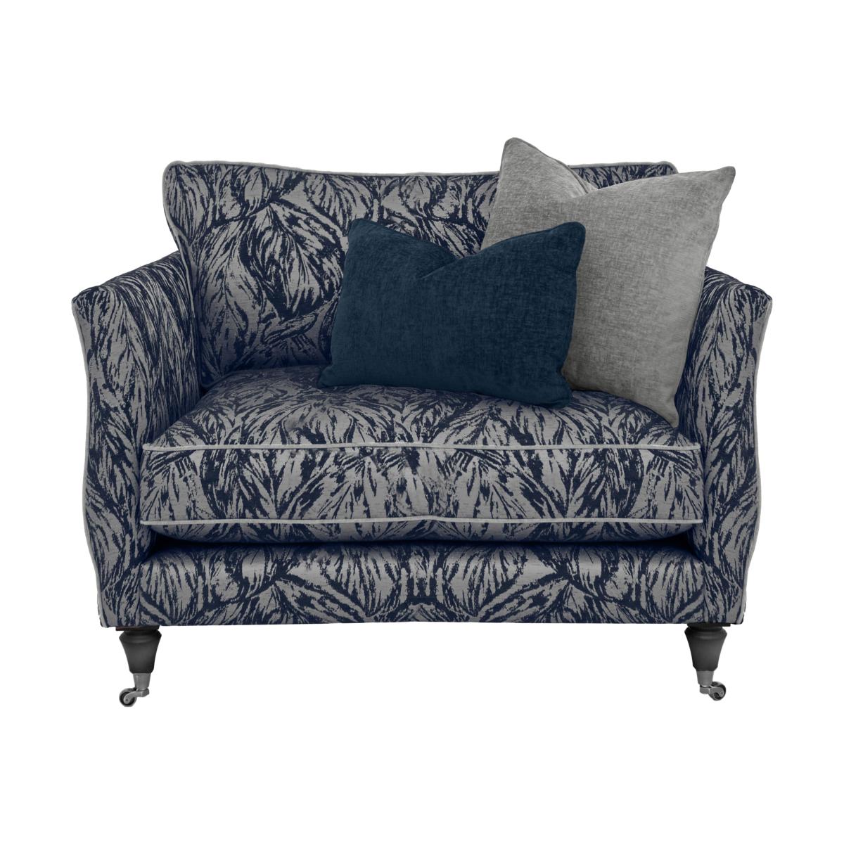 A new age of elegance has arrived. The handcrafted Boutique Chatterley range, part of our Boutique Collection, displays grace and grandeur at every turn, drawing inspiration from traditional British sofa style. You’ll find charming drop down Knole arms secured by wooden finials and silken cords with tassels, slender curved arms, scroll backs and turned wood legs. You’ll also enjoy the way this range embraces modern comfort in its generous proportions, sprung seats, sumptuous sink-in cushioning, and complimentary feather-filled scatters and bolsters. Pieces are available in a choice of hand-picked fabrics and carefully edited colour palettes. The Boutique Chatterley range is exclusively available at Furniture Village. There’s room for you and a friend to enjoy elegant style and sumptuous comfort thanks to this beautifully handcrafted snuggler chair. Only at Furniture Village. Why you'll love it Make yourself at home on this roomy and inviting snuggler chair. Traditional British elegance, extraordinary attention to detail. Upholstered by hand in a collection of exceptional fabrics and beautiful colourways. Choose Bolero, a soft, vintage-look chenille, or Canopy, a satin with a woven leaf pattern. The generous sprung seat has feather and fibre cushioning for sink-in softness. With a feather scatter cushion and a feather bolster cushion. Choice of turned wood leg colour with optional castors. Sturdy frame is built by hand and comes with a 10-year guarantee. Exclusive to Furniture Village. This snuggler is part of the Boutique Chatterley range. What you need to know Medium comfort level. Seat suspension: zig-zag springs. Seat cushioning: fibre and feather. Seat cushion is reversible. Back support: elasticated webbing. Back cushioning: fibre and feather. Back cushion is reversible. If you choose a Bolero fabric, the bolster cushion will be in the same fabric. The scatter cushion will have coordinating Canopy fabric fronts, and Bolero fabric backs and piping. If you choose a Canopy fabric, the bolster cushion will be in a coordinating Bolero fabric. The scatter cushion will have Canopy fabric fronts, and coordinating Bolero fabric backs and piping. Allergies? This snuggler and its scatter and bolster cushions can be made with fibre filling. Feet are removable. Plump snuggler cushions daily to maintain fullness. Some fabrics can show wear on areas of more use or in direct sunlight. Clean regularly using a soft brush or vacuum with the curtain attachment. Deal with any spills promptly. Professional cleaning advised for oil- and grease-based stains. Please read our upholstery care guide for more advice.