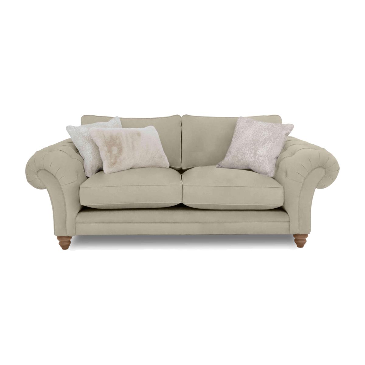 Our Boutique Blenheim collection of upholstered living room furniture is every bit as grand and gracious as the quintessentially English stately home for which it is named. You’ll find a surprising yet very gratifying combination of traditional sofa luxury – sweeping rolled arms, meticulous buttoning and turned wood legs – and contemporary sofa comfort with soft yet supportive cushioning underpinned by our five-year plumpness guarantee. This extensive range features modern feather-filled scatter back sofas, classic back sofas, armchairs and footstools in a choice of beautiful upholstery fabrics. The Boutique Blenheim collection is handcrafted in England and is exclusive to Furniture Village. Come home to style, elegance and the kind of comfort you’ll have been dreaming about all day. This roomy three-seater sofa brings together traditional sofa style with unbelievable comfort. Why you'll love it This gorgeous 3-seater sofa feels every bit as fabulous as it looks. Stately home glamour, contemporary comfort. Incredible seat cushions are filled with Encore foam for softness with support. Our 5-year plumpness guarantee promises that perfect sit, time after time. Superb traditional details – rolled arms with buttoning and turned wood legs. With reversible feather-filled accent cushions – 2 square scatters and 1 faux fur bolsters. Choice of beautiful upholstery fabrics. Also available as a pillow back sofa with 6 feather-filled scatter cushions. Part of the Boutique Collection of timelessly elegant sofas and chairs. Handcrafted in England and exclusive to Furniture Village. This 3-seater classic back sofa is part of the Boutique Blenheim range. What you need to know Medium comfort level. Seat suspension: zig zag springs. Seat cushioning: Encore foam. Seat cushions are reversible. Back suspension: elasticated webbing. Back cushioning: feather and fibre. Back cushions are reversible. Rotate seat cushions regularly. Plump back cushions daily. Arms and feet are removable. Some fabrics can show wear on areas of more use or in direct sunlight. Flattening and shading of heavy wear areas on pile fabrics is unavoidable. Clean regularly using a soft brush or vacuum with the curtain attachment. Deal with any spills promptly. Professional cleaning advised for oil- and grease-based stains. Please read our upholstery care guide for more advice.