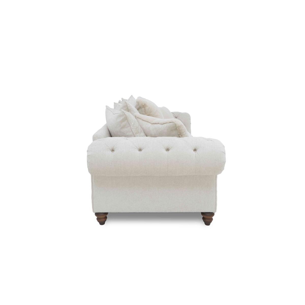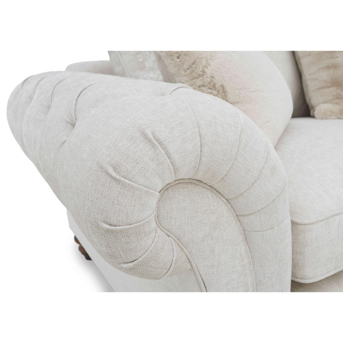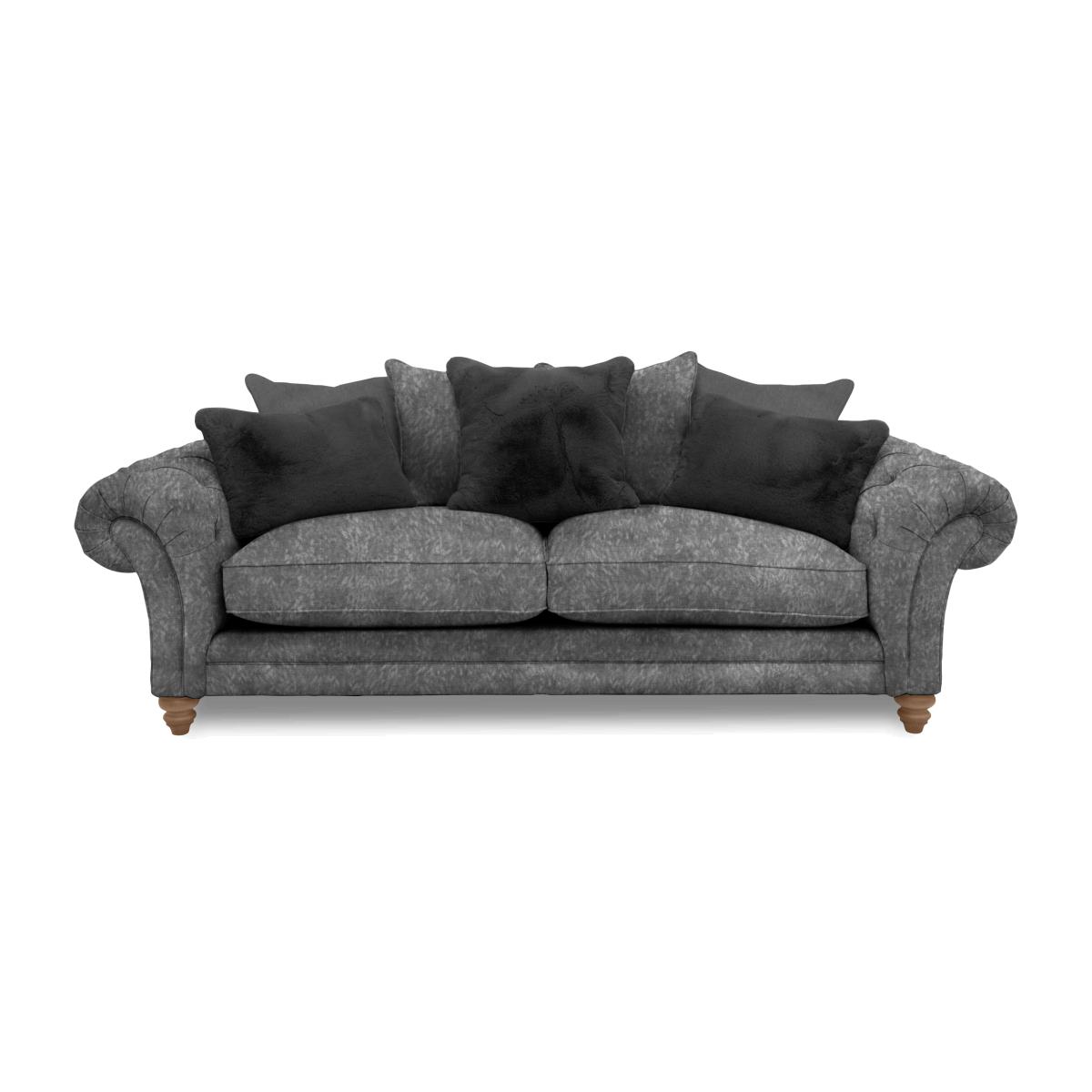 Our Boutique Blenheim collection of upholstered living room furniture is every bit as grand and gracious as the quintessentially English stately home for which it is named. You’ll find a surprising yet very gratifying combination of traditional sofa luxury – sweeping rolled arms, meticulous buttoning and turned wood legs – and contemporary sofa comfort with soft yet supportive cushioning underpinned by our five-year plumpness guarantee. This extensive range features modern feather-filled scatter back sofas, classic back sofas, armchairs and footstools in a choice of beautiful upholstery fabrics. The Boutique Blenheim collection is handcrafted in England and is exclusive to Furniture Village. This large scatter back sofa gives you so much – relaxed modern pillow back style, superb traditional sofa details and the kind of soft yet supportive cushioning that’ll keep you lounging for longer. Why you'll love it 4-seater scatter back sofa is the perfect blend of traditional and modern. Stately home glamour, contemporary comfort. Incredible seat cushions are filled with Encore foam for softness with support. Our 5-year plumpness guarantee promises that perfect sit, time after time. With reversible faux fur and fabric feather cushions – 5 square scatters and 2 bolsters. Superb traditional details – rolled arms with buttoning and turned wood legs. Choice of beautiful upholstery fabrics. Also available as a classic back sofa with coordinating accent cushions. Part of the Boutique Collection of timelessly elegant sofas and chairs. Handcrafted in England and exclusive to Furniture Village. This 4-seater scatter back sofa is part of the Boutique Blenheim range. What you need to know Medium comfort level. Seat suspension: zig zag springs. Seat cushioning: Encore foam. Seat cushions are reversible. Back suspension: elasticated webbing. Back cushioning: feather-filled scatter cushions. Rotate seat cushions regularly. Arms and feet are removable. Some fabrics can show wear on areas of more use or in direct sunlight. Flattening and shading of heavy wear areas on pile fabrics is unavoidable. Clean regularly using a soft brush or vacuum with the curtain attachment. Deal with any spills promptly. Professional cleaning advised for oil- and grease-based stains. Please read our upholstery care guide for more advice.