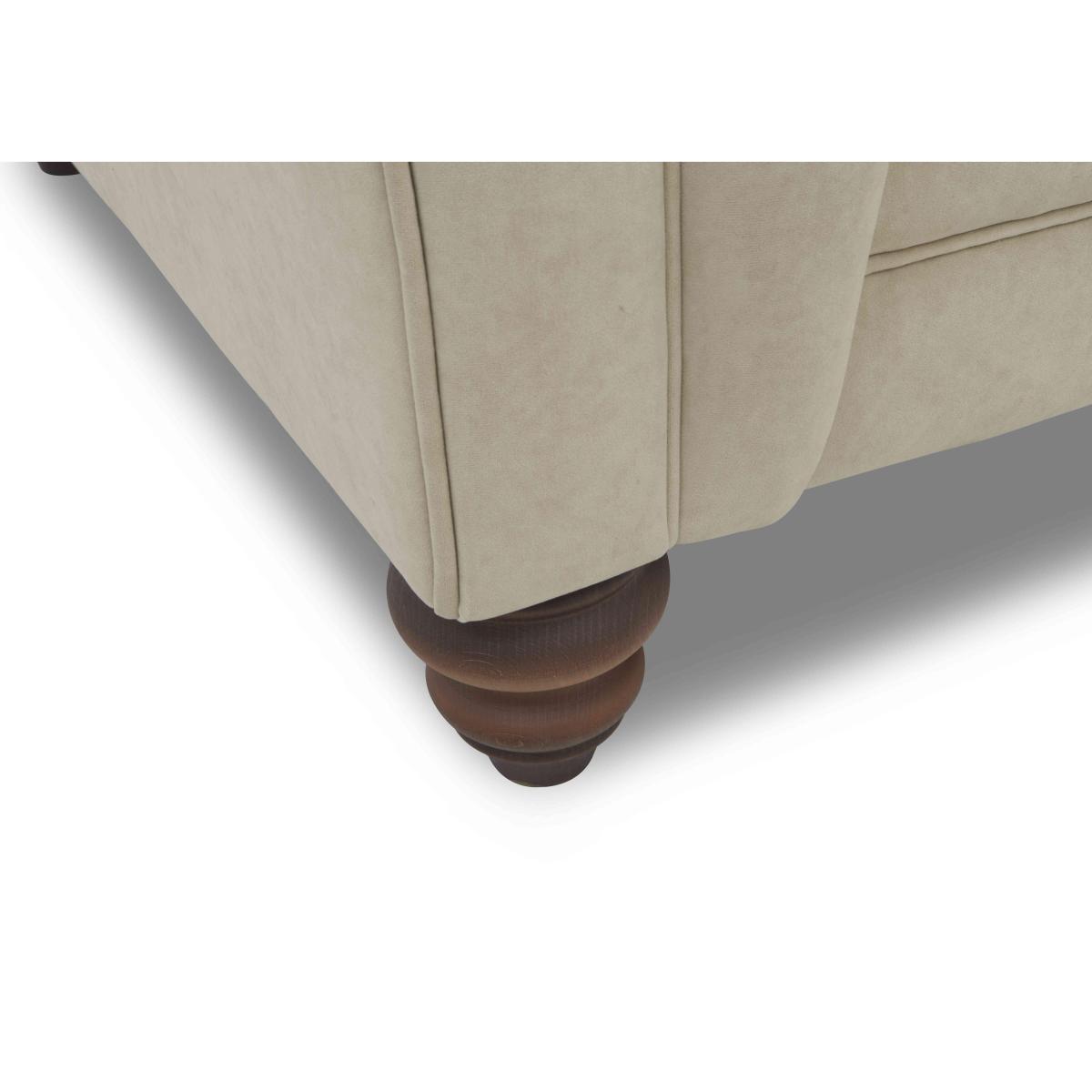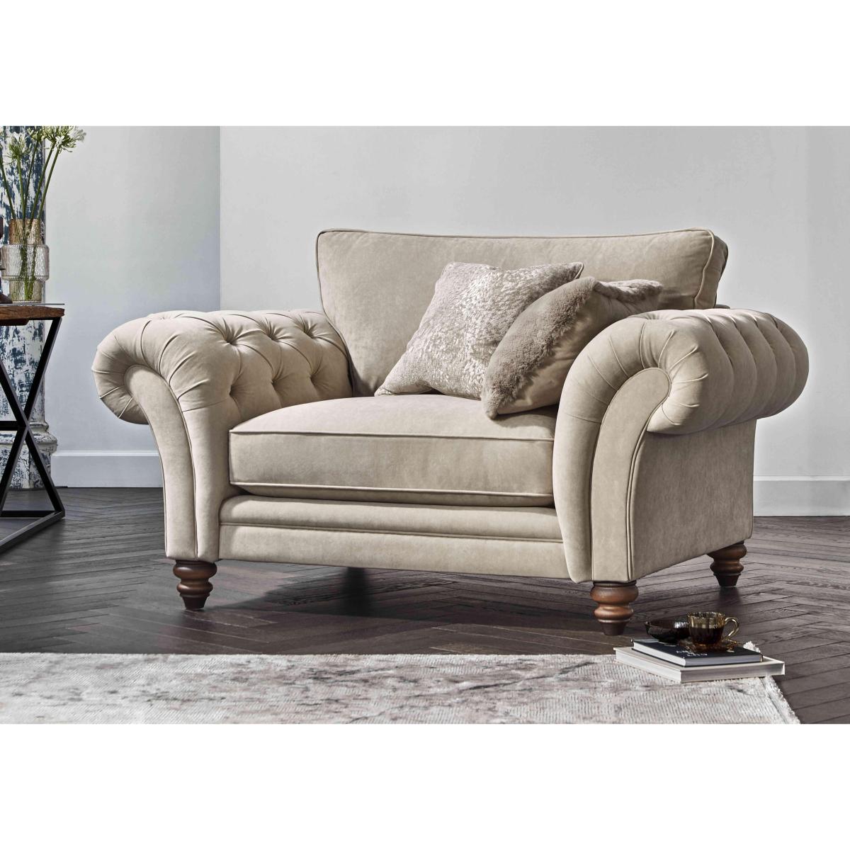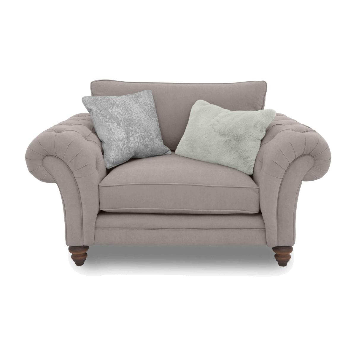 Our Boutique Blenheim collection of upholstered living room furniture is every bit as grand and gracious as the quintessentially English stately home for which it is named. You’ll find a surprising yet very gratifying combination of traditional sofa luxury – sweeping rolled arms, meticulous buttoning and turned wood legs – and contemporary sofa comfort with soft yet supportive cushioning underpinned by our five-year plumpness guarantee. This extensive range features modern feather-filled scatter back sofas, classic back sofas, armchairs and footstools in a choice of beautiful upholstery fabrics. The Boutique Blenheim collection is handcrafted in England and is exclusive to Furniture Village. With room for two, this lovely snuggler chair is the perfect petite sofa. It has sprung seats and Encore foam cushioning for comfort, and gorgeous rolled arms, buttoning and turned legs for style. Why you'll love it Snuggle in style on this amazingly comfortable snuggler chair. Stately home glamour, contemporary comfort. Incredible seat cushioning with Encore foam for softness with support. Our 5-year plumpness guarantee promises that perfect sit, time after time. Superb traditional details – rolled arms with buttoning and turned wood legs. With reversible feather-filled accent cushions – 1 square scatter and 1 faux fur bolster. Choice of beautiful upholstery fabrics. Part of the Boutique Collection of timelessly elegant sofas and chairs. Handcrafted in England and exclusive to Furniture Village. This classic back snuggler chair is part of the Boutique Blenheim range. What you need to know Medium comfort level. Seat suspension: zig zag springs. Seat cushioning: Encore foam. Seat cushion is reversible. Back suspension: elasticated webbing. Back cushioning: feather and fibre. Back cushion is reversible. Plump back cushion daily. Arms and feet are removable. Some fabrics can show wear on areas of more use or in direct sunlight. Flattening and shading of heavy wear areas on pile fabrics is unavoidable. Clean regularly using a soft brush or vacuum with the curtain attachment. Deal with any spills promptly. Professional cleaning advised for oil- and grease-based stains. Please read our upholstery care guide for more advice.