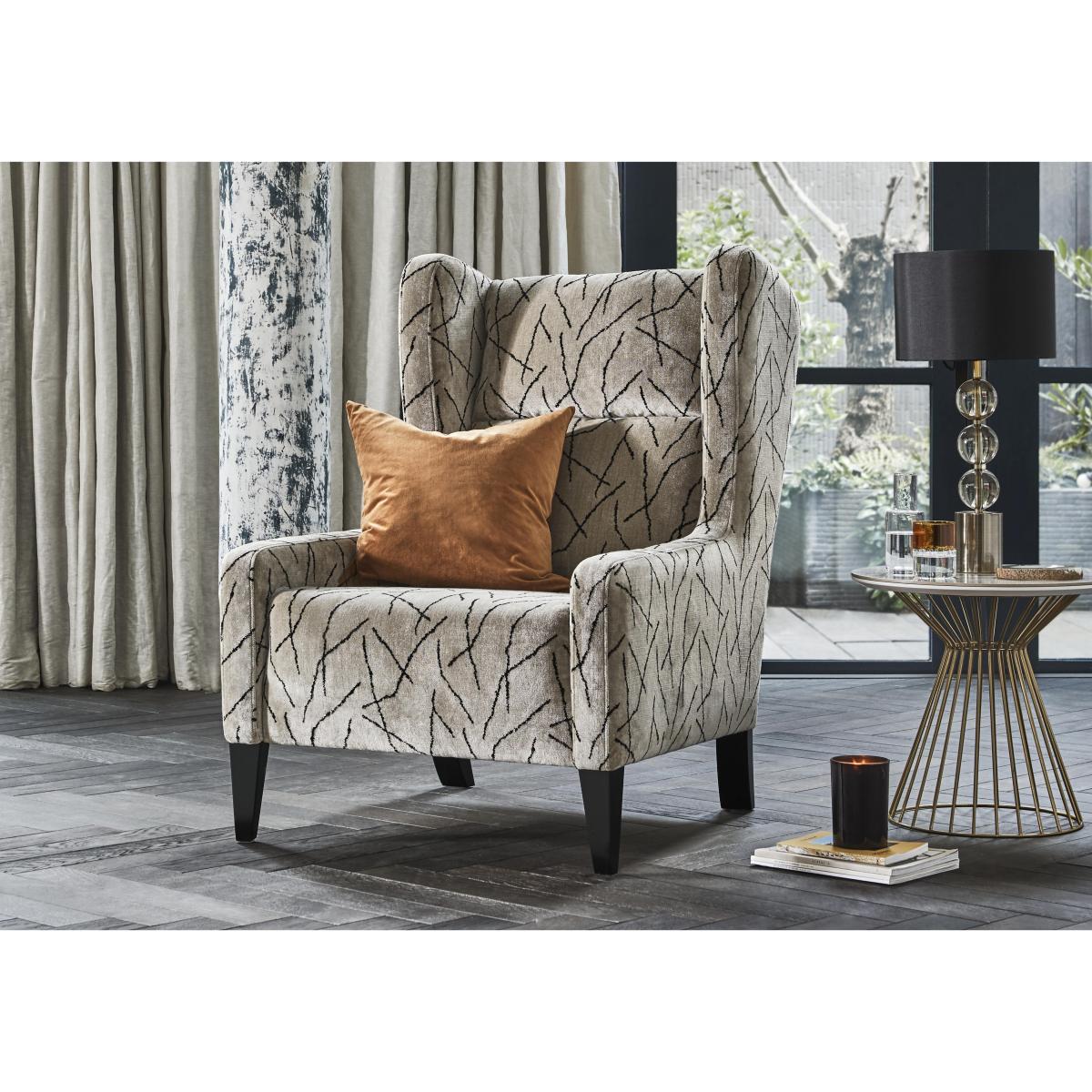 The Boutique Lavish range is a glamorous revolution in contemporary style that marks a new chapter in British design. Made to stand out, its modern style reimagines classics and gives luxury a one-of-a-kind glamorous look. With sumptuous chenille upholstery, elegant fluted arms, and a deep Encore foam seat with a 5-year plumpness guarantee, Lavish is simply irresistible. Silk-soft feather-filled cushions and bolsters are included with the sofas and snugglers, while the stylish bench footstool also serves as a chic coffee table. Designed in the UK by Alexander & James exclusively for Furniture Village. Take a seat in the front row with the Boutique Lavish fabric wing chair. Glamorous design in a sumptuous, patterned chenille upholstery that rests gracefully on tapered legs. Can we get you a glass of champagne?. Why you'll love it. Elevate your space with this luxuriously styled wing chair. Modern glamorous silhouette with a statement feel. Sumptuous, patterned chenille upholstery. Sleek tapered feet. Generously deep ‘spring-back’ encore foam seat cushion for extra comfort. Designed in the UK by Alexander and James exclusively for Furniture Village. This gorgeous chair is part of the Boutique Lavish range of sofas, chairs and footstools. What you need to know. Medium comfort level. Fibre filled lumbar and head roll. High density encore foam seat cushion with 5-year guarantee plumpness. Solid hardwood frame. Bolt off arms for easier delivery, but please consider access for our delivery team. Please read our upholstery care guide for more advice.