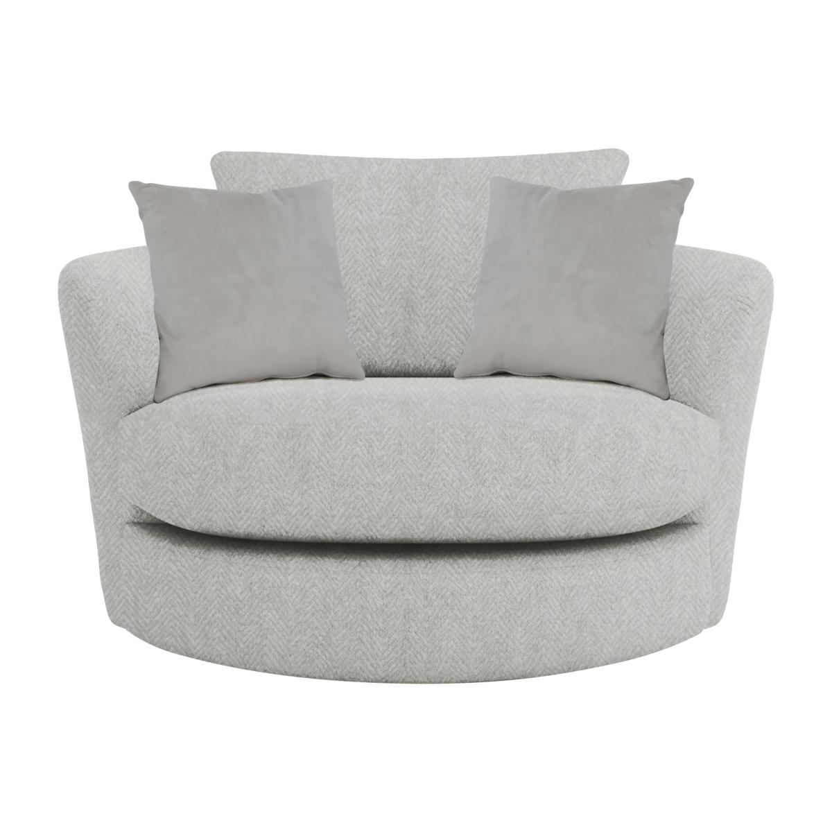 Love that casual sofa look, all deep seats and super squishy cushioning? With the Boutique Pandora range, part of our Boutique Collection, you get all that and gorgeously glam sofa style too. These sophisticated sofas, corner sofas and chairs have deep sprung seats and the kind of soft cushioning that invites you to sit back and chill. Silhouettes are fashionably low, arms are comfortably wide, and the higher back cushions deliver superb head and neck support. The range is available in a range of sleek and chic upholstery fabrics that emphasise its contemporary glam style. The Boutique Pandora range handcrafted in the UK and exclusively available at Furniture Village. There’s so much to love about this fabulous swivelling armchair – the super-soft, sink-in feel of the cushioning, the glam fabric and its cool curvy shape. Plus it swivels. Why you'll love it This large swivel chair is definitely a keeper. Glam and gorgeous meets soft and squishy. The sink-in back and seat cushions have soft fibre filling. Deep sprung seat and high back for comfort with support. Comes with 2 feather-filled scatter cushions. Upholstered in a choice of fabulous fabrics. Set on glides for that contemporary floating look. Sturdy frame is made from sustainably sourced wood. Handcrafted in the UK and exclusive to Furniture Village. This large swivel chair is part of the Boutique Pandora range. What you need to know Soft comfort level. Seat suspension: zig-zag springs. Seat cushioning: fibre. Cushion is reversible. Back support: woven elastic webbing. Back cushioning: fibre. Cushion is reversible. To maintain cushion shape and fullness, be sure to plump daily. Some fabrics can show wear on areas of more use or in direct sunlight. Clean regularly using a soft brush or vacuum with the curtain attachment. Deal with any spills promptly. Professional cleaning advised for oil- and grease-based stains. Please read our upholstery care guide for more advice.