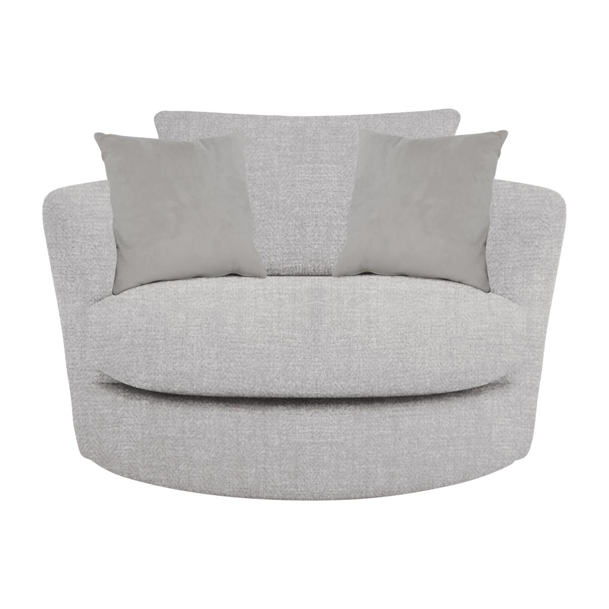 Love that casual sofa look, all deep seats and super squishy cushioning? With the Boutique Pandora range, part of our Boutique Collection, you get all that and gorgeously glam sofa style too. These sophisticated sofas, corner sofas and chairs have deep sprung seats and the kind of soft cushioning that invites you to sit back and chill. Silhouettes are fashionably low, arms are comfortably wide, and the higher back cushions deliver superb head and neck support. The range is available in a range of sleek and chic upholstery fabrics that emphasise its contemporary glam style. The Boutique Pandora range handcrafted in the UK and exclusively available at Furniture Village. There’s so much to love about this fabulous swivelling armchair – the super-soft, sink-in feel of the cushioning, the glam fabric and its cool curvy shape. Plus it swivels. Why you'll love it This large swivel chair is definitely a keeper. Glam and gorgeous meets soft and squishy. The sink-in back and seat cushions have soft fibre filling. Deep sprung seat and high back for comfort with support. Comes with 2 feather-filled scatter cushions. Upholstered in a choice of fabulous fabrics. Set on glides for that contemporary floating look. Sturdy frame is made from sustainably sourced wood. Handcrafted in the UK and exclusive to Furniture Village. This large swivel chair is part of the Boutique Pandora range. What you need to know Soft comfort level. Seat suspension: zig-zag springs. Seat cushioning: fibre. Cushion is reversible. Back support: woven elastic webbing. Back cushioning: fibre. Cushion is reversible. To maintain cushion shape and fullness, be sure to plump daily. Some fabrics can show wear on areas of more use or in direct sunlight. Clean regularly using a soft brush or vacuum with the curtain attachment. Deal with any spills promptly. Professional cleaning advised for oil- and grease-based stains. Please read our upholstery care guide for more advice.
