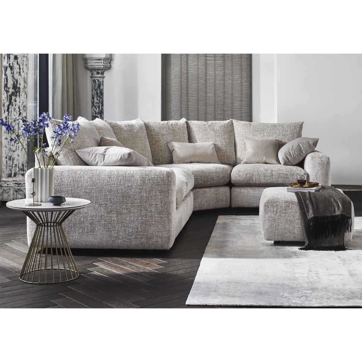 Love that casual sofa look, all deep seats and super squishy cushioning? With the Boutique Pandora range, part of our Boutique Collection, you get all that and gorgeously glam sofa style too. These sophisticated sofas, corner sofas and chairs have deep sprung seats and the kind of soft cushioning that invites you to sit back and chill. Silhouettes are fashionably low, arms are comfortably wide, and the higher back cushions deliver superb head and neck support. The range is available in a range of sleek and chic upholstery fabrics that emphasise its contemporary glam style. The Boutique Pandora range handcrafted in the UK and exclusively available at Furniture Village. If you’re a fan of that casual squishy sofa look, you’ll love this rather glam small corner sofa. (And by small we only mean smaller than the Boutique Pandora large corner sofa).Why you'll love it Comfort has a new name – here’s the Boutique Pandora small corner sofa. Glam and gorgeous meets soft and squishy. The sink-in back and seat cushions have soft fibre filling. Deep sprung seats and high backs for comfort with support. Comes with feather-filled scatters – 4 square cushions and 1 bolster. Upholstered in a choice of fabulous fabrics. Set on glides for that contemporary floating look. Sturdy frame is made from sustainably sourced wood. Choose right-hand or left-hand facing. Handcrafted in the UK and exclusive to Furniture Village. This small corner sofa is part of the Boutique Pandora range. What you need to know Soft comfort level. Seat suspension: zig-zag springs. Seat cushioning: fibre. Cushions are reversible. Back support: woven elastic webbing. Back cushioning: fibre. Cushions are reversible. To maintain cushion shape and fullness, be sure to plump daily. Rotate back and seat cushions for more even wear. Some fabrics can show wear on areas of more use or in direct sunlight. Clean regularly using a soft brush or vacuum with the curtain attachment. Deal with any spills promptly. Professional cleaning advised for oil- and grease-based stains. Please read our upholstery care guide for more advice.