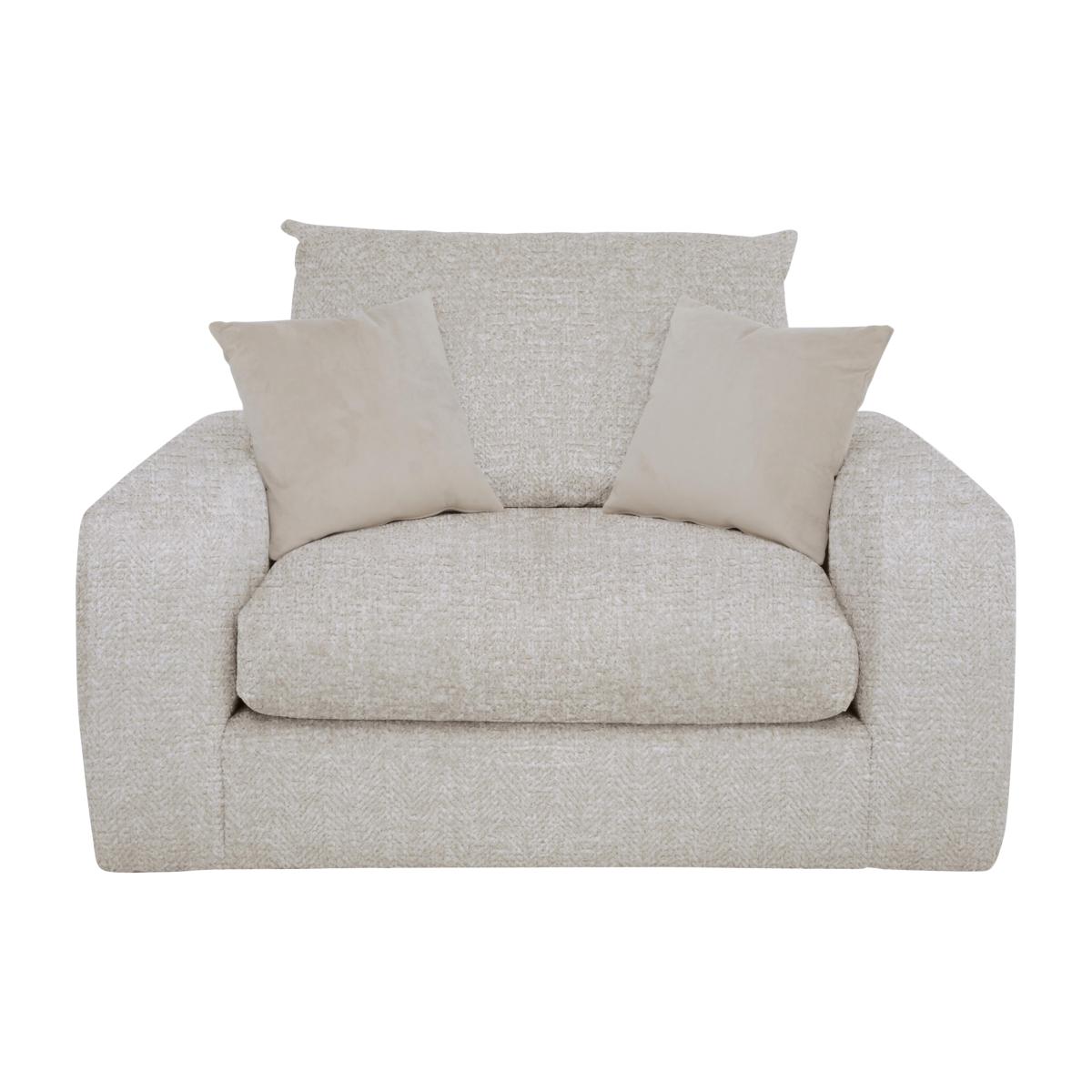 Love that casual sofa look, all deep seats and super squishy cushioning? With the Boutique Pandora range, part of our Boutique Collection, you get all that and gorgeously glam sofa style too. These sophisticated sofas, corner sofas and chairs have deep sprung seats and the kind of soft cushioning that invites you to sit back and chill. Silhouettes are fashionably low, arms are comfortably wide, and the higher back cushions deliver superb head and neck support. The range is available in a range of sleek and chic upholstery fabrics that emphasise its contemporary glam style. The Boutique Pandora range handcrafted in the UK and exclusively available at Furniture Village. This gorgeous snuggler is large enough for two but why would you want to share its deep seat, incredibly soft cushioning and wide arms? Only at Furniture Village. Why you'll love it Supersized chair for one or snuggler chair for two? You decide. Glam and gorgeous meets soft and squishy. The sink-in back and seat cushions have soft fibre filling. Deep sprung seat and high back for comfort with support. Comes with 2 feather-filled scatter cushions. Upholstered in a choice of fabulous fabrics. Set on glides for that contemporary floating look. Sturdy frame is made from sustainably sourced wood. Handcrafted in the UK and exclusive to Furniture Village. This snuggler is part of the Boutique Pandora range. What you need to know Soft comfort level. Seat suspension: zig-zag springs. Seat cushioning: fibre. Cushion is reversible. Back support: woven elastic webbing. Back cushioning: fibre. Cushion is reversible. To maintain cushion shape and fullness, be sure to plump daily. Some fabrics can show wear on areas of more use or in direct sunlight. Clean regularly using a soft brush or vacuum with the curtain attachment. Deal with any spills promptly. Professional cleaning advised for oil- and grease-based stains. Please read our upholstery care guide for more advice.