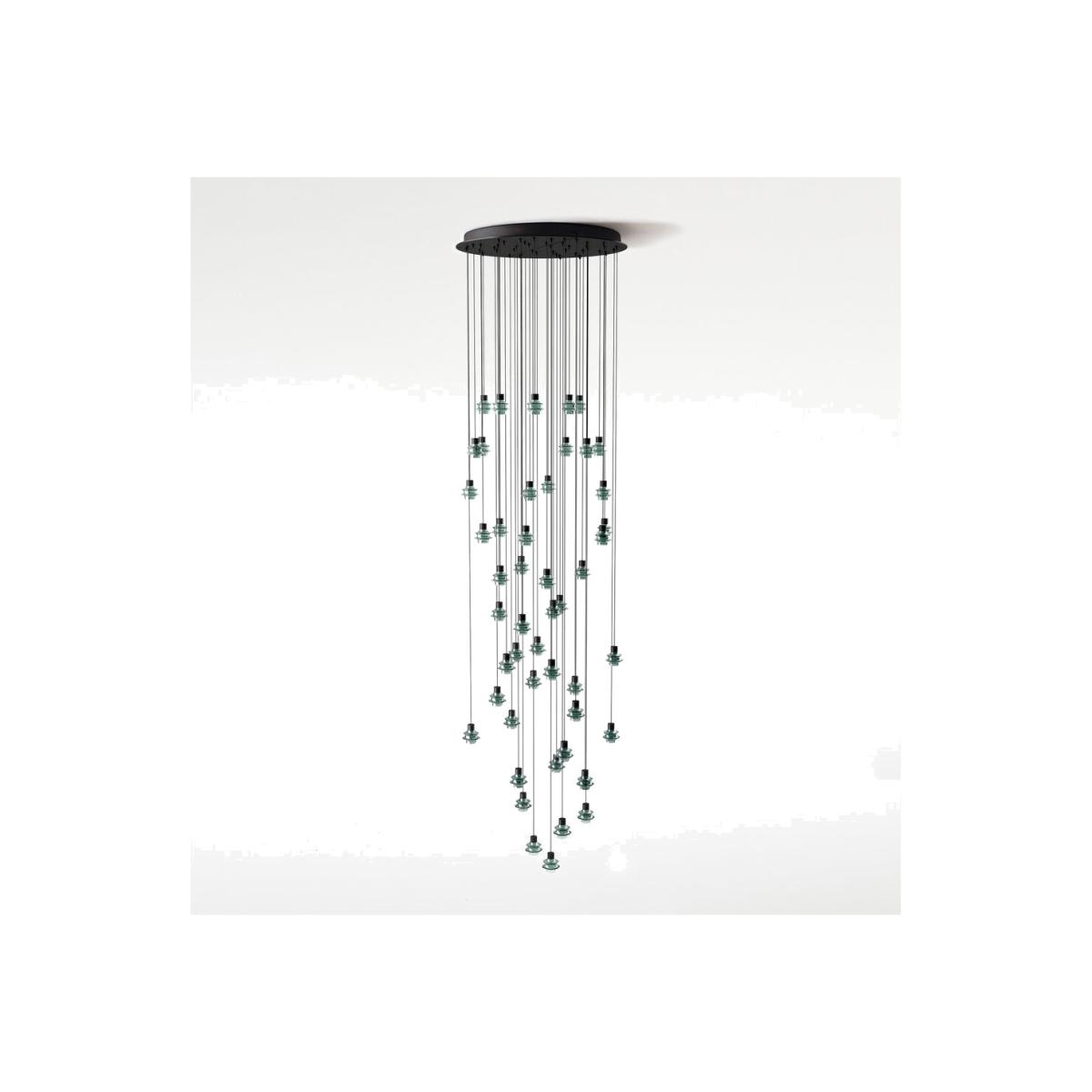 Ramp up the drama in your home with this Drop 48 light from Bover. With 48 individual LED bulbs each topped with a glass shade, this light is striking in any space. Finished with adjustable black cables to fit your ceiling height and a matching ceiling rose, it will instantly bring statement style to your interior. Key features: * Material: aluminium, iron, glass * Dimensions: H96-371xØ105cm * CE certified * Bulb requirements: 48 x integrated LEDs (included) * Colour temperature: 2700. K (warm white) * Dramatic multi bulb drop design * Each with a green glass shade * Sleek black cables & ceiling rose * Dimmable * Adjustable height to suit your space