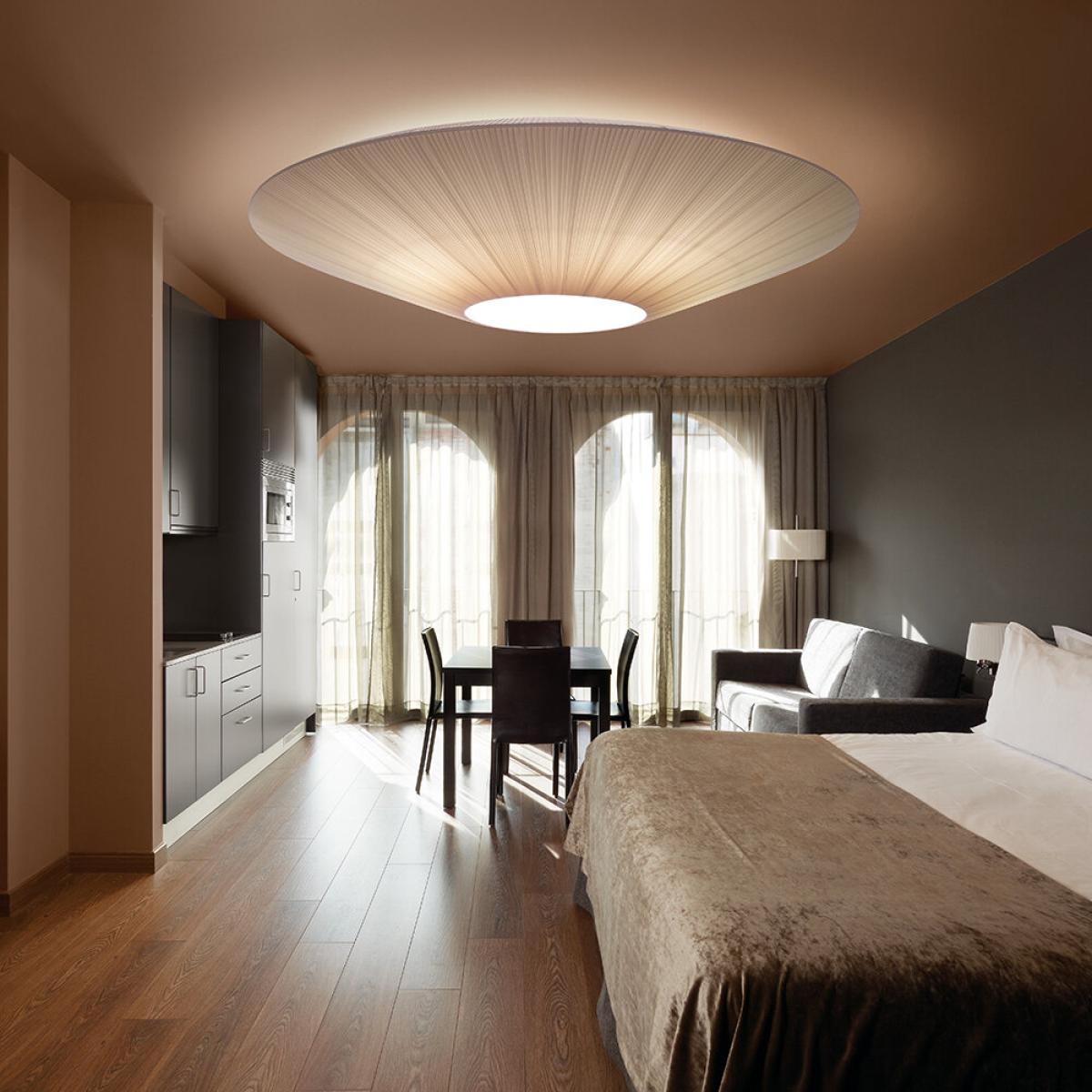 Ramp up the drama in your home with this Siam 150 light from Bover. Inspired by traditional South East Asia decor, this light has a pleated fan design which will spread beautifully across any ceiling. Key features: * Material: iron, stainless steel, polycarbonate * Dimensions: H40.5xW150cm * Bulb requirements: 6 x E27 9W LED (not included) * Dimmable function * South East Asian inspired design * With a large fanned lampshade * In warm cream