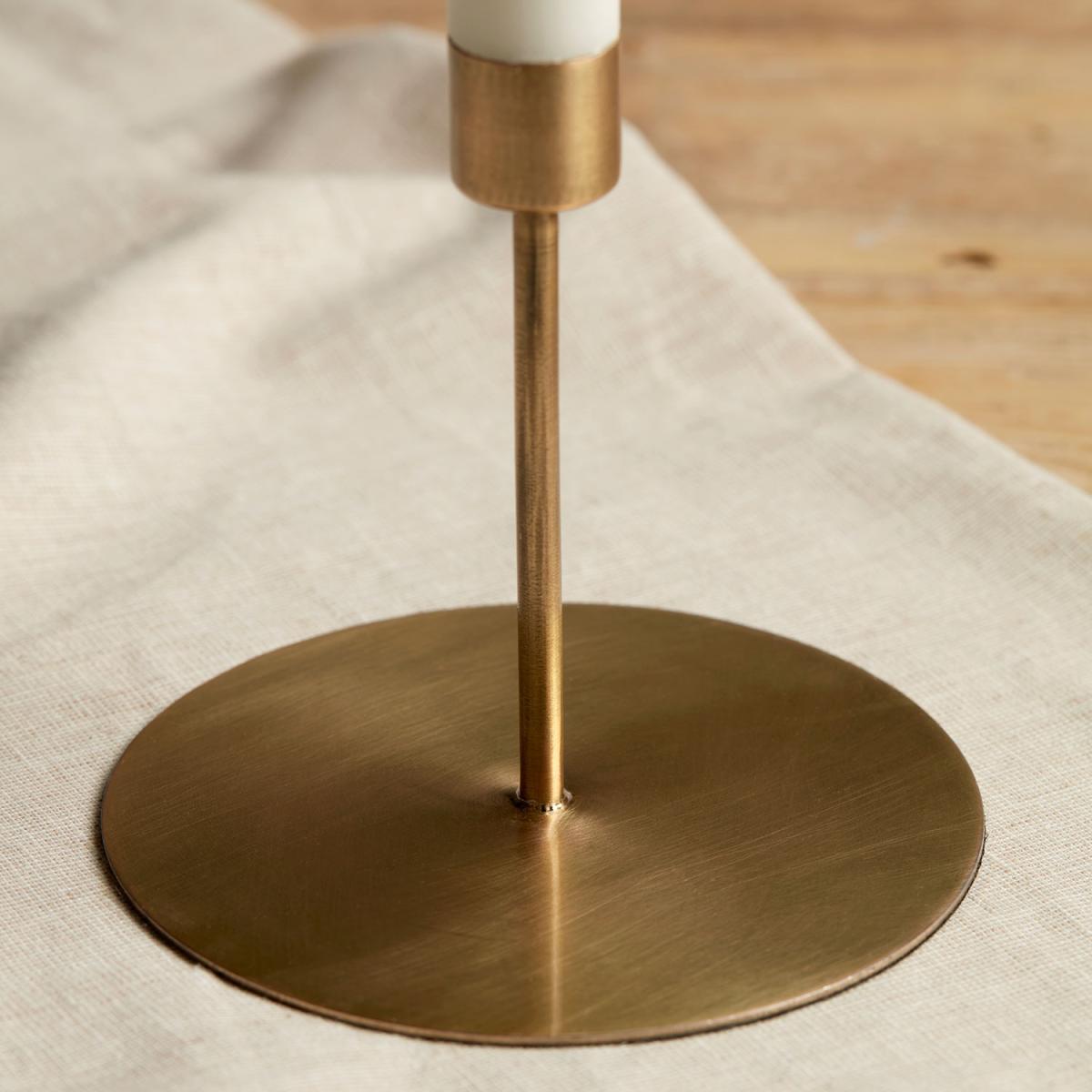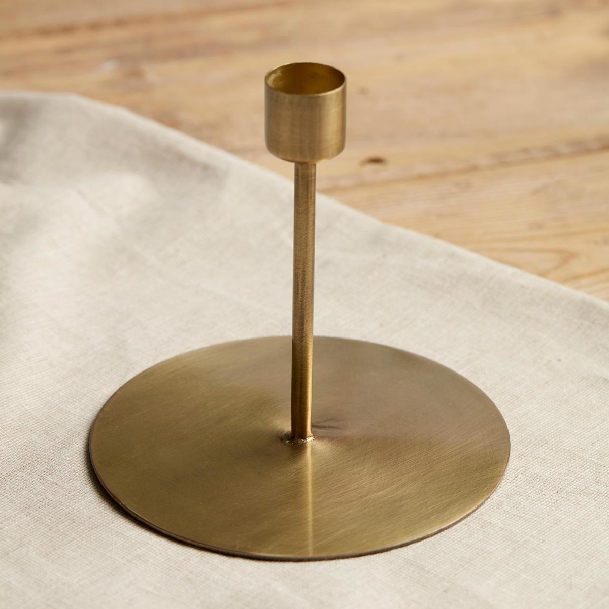 Place this refined Bovey wide based modern candle holder stand onto any number of dining table decor styles. The contemporary, yet classic, feeling ‘brass’ finish is iron that’s finished in an enjoyably glamorous hue. The wide base lends itself to dressing beneath the stand, especially during the festive season. This candle stand will be especially lovely as a gift.