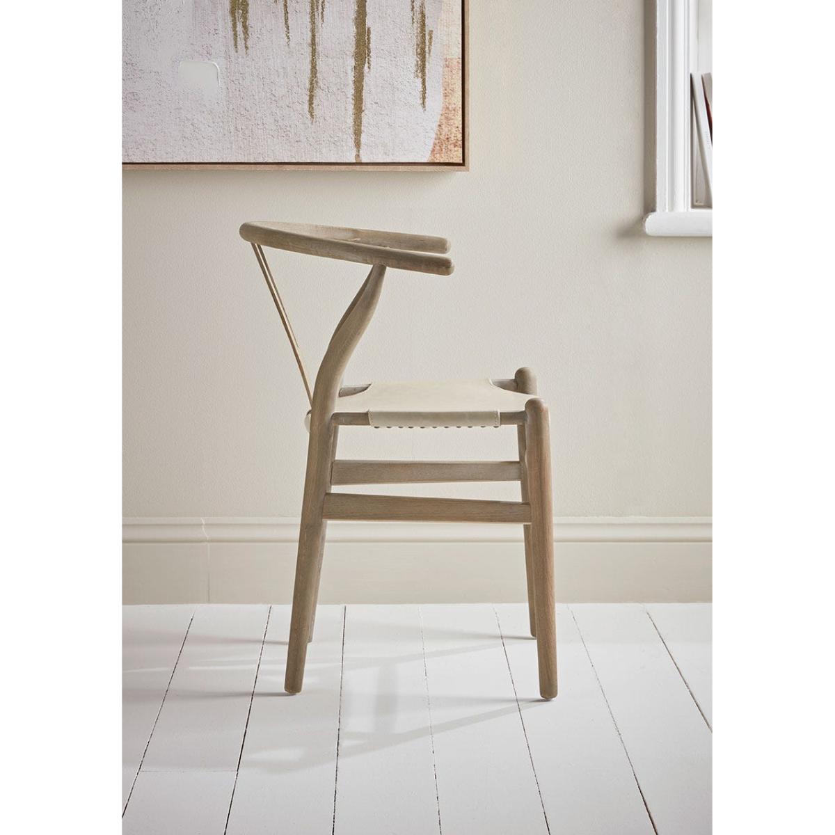 I’m a fan of this soft-grey bow-back chair for its clean lines and pared-back feel - it brings instant structure without looking heavy. The gently curved back and muted finish work well in Scandi, coastal or contemporary country kitchens, and pair neatly with a simple oak or whitewashed table. To style, try mixing it with darker chairs at each end to add contrast, or introduce a woven seat pad in natural fibres for extra comfort and texture. It also lifts well against a pale, neutral backdrop or alongside a muted feature wall.
