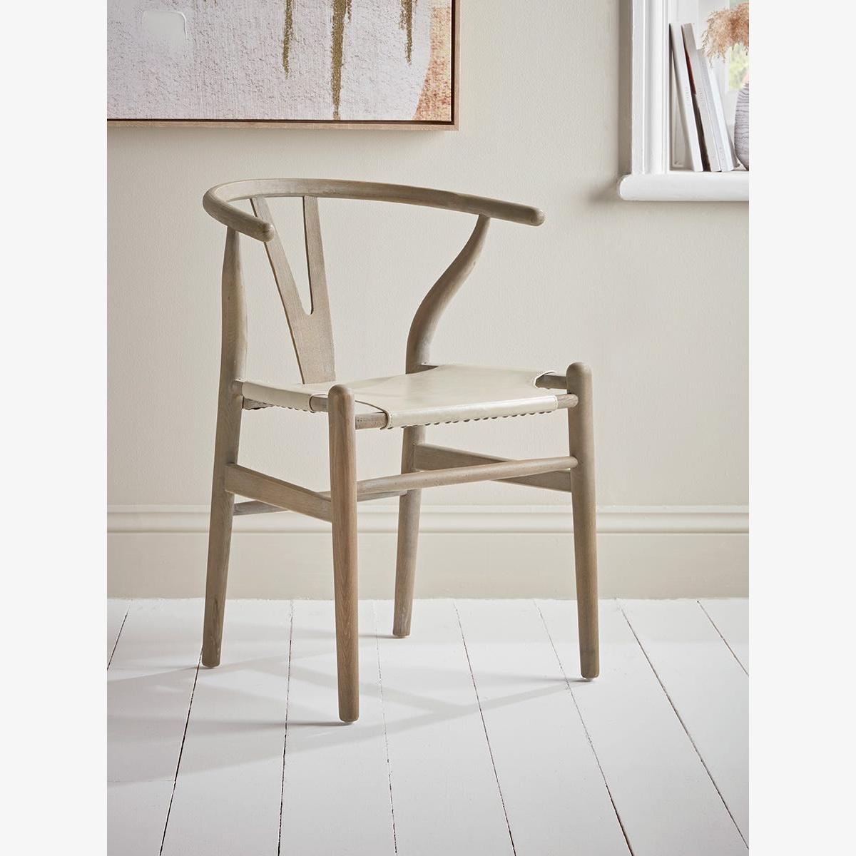 A new take on one of our favourite pieces, the grey finish on this bow back dining chair softens the lines, allowing it to flourish in any scheme. A faux leather seat replaces the more traditional rattan for a stylish and contemporary upgrade that beautifully complements the gentle curves of the elm frame.